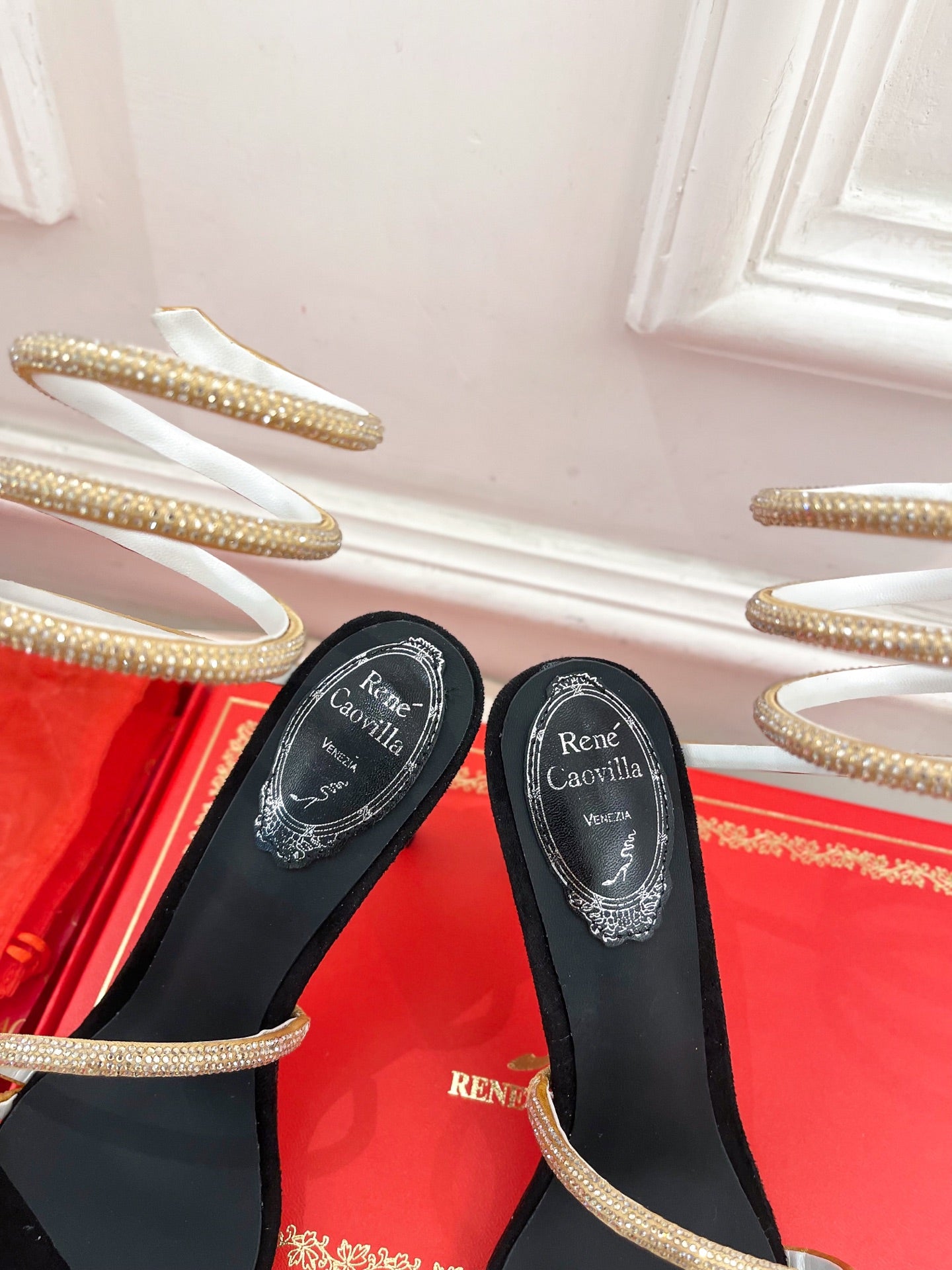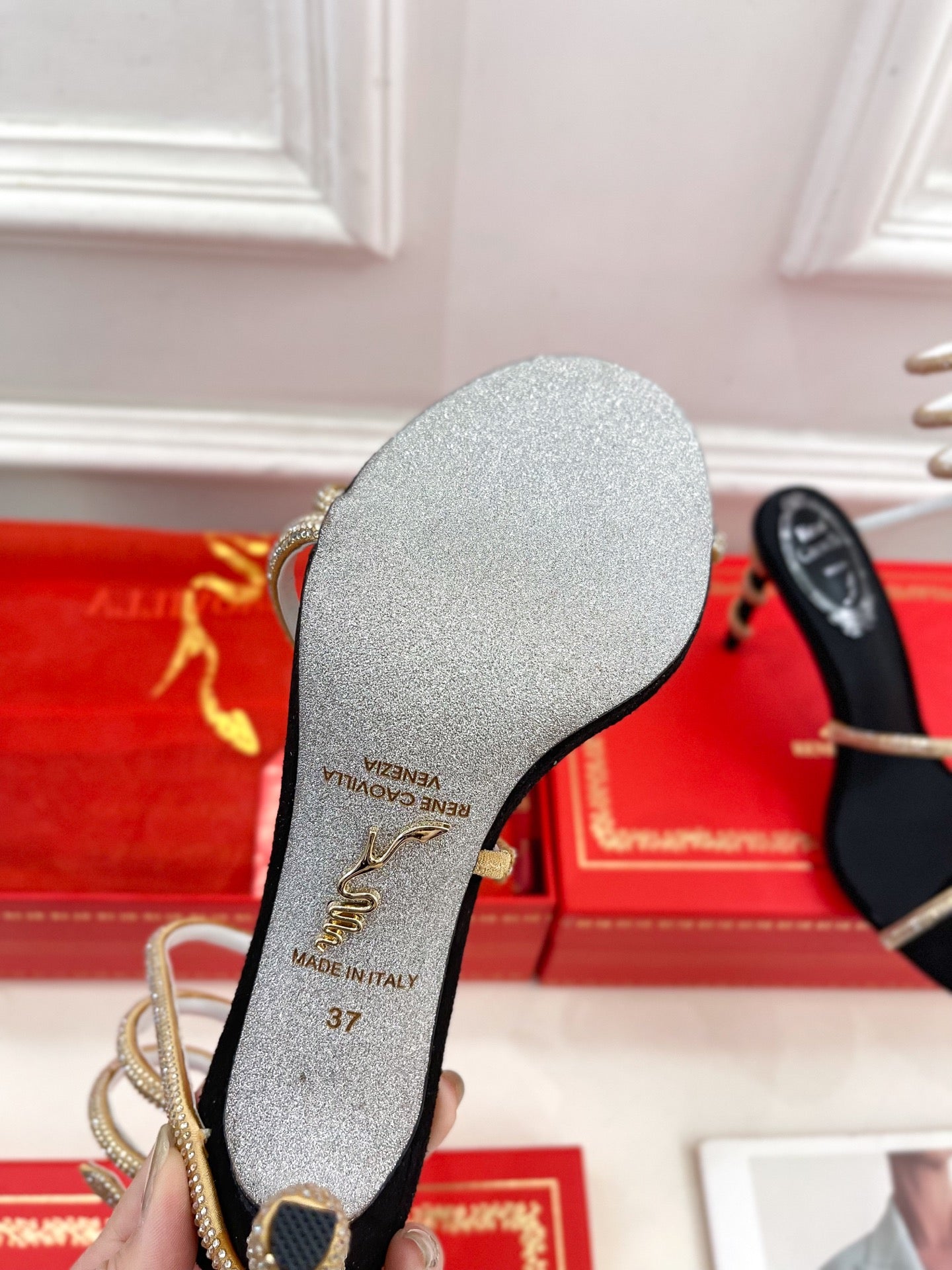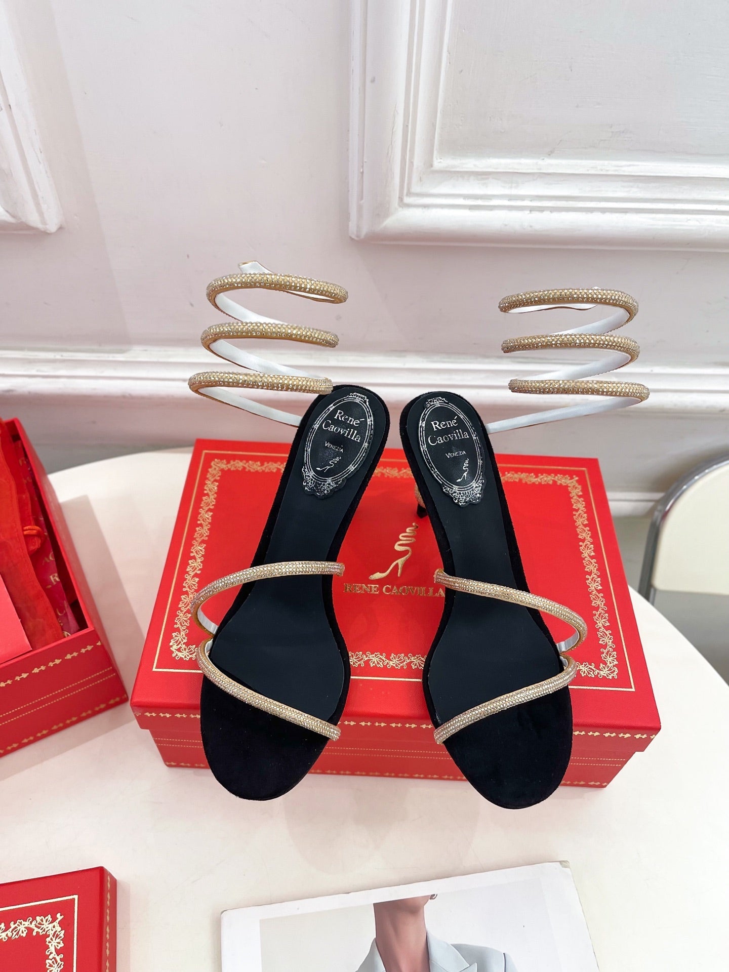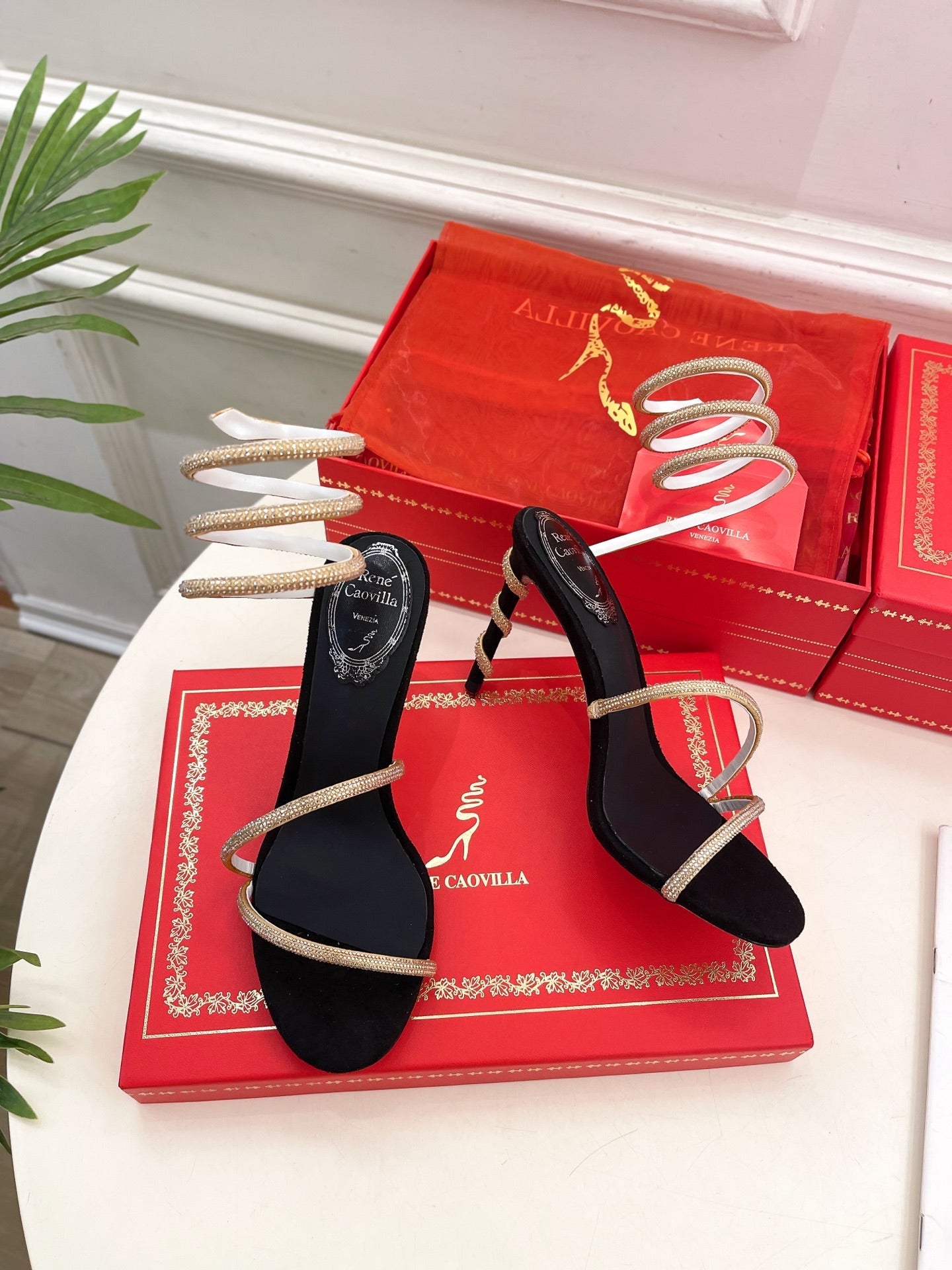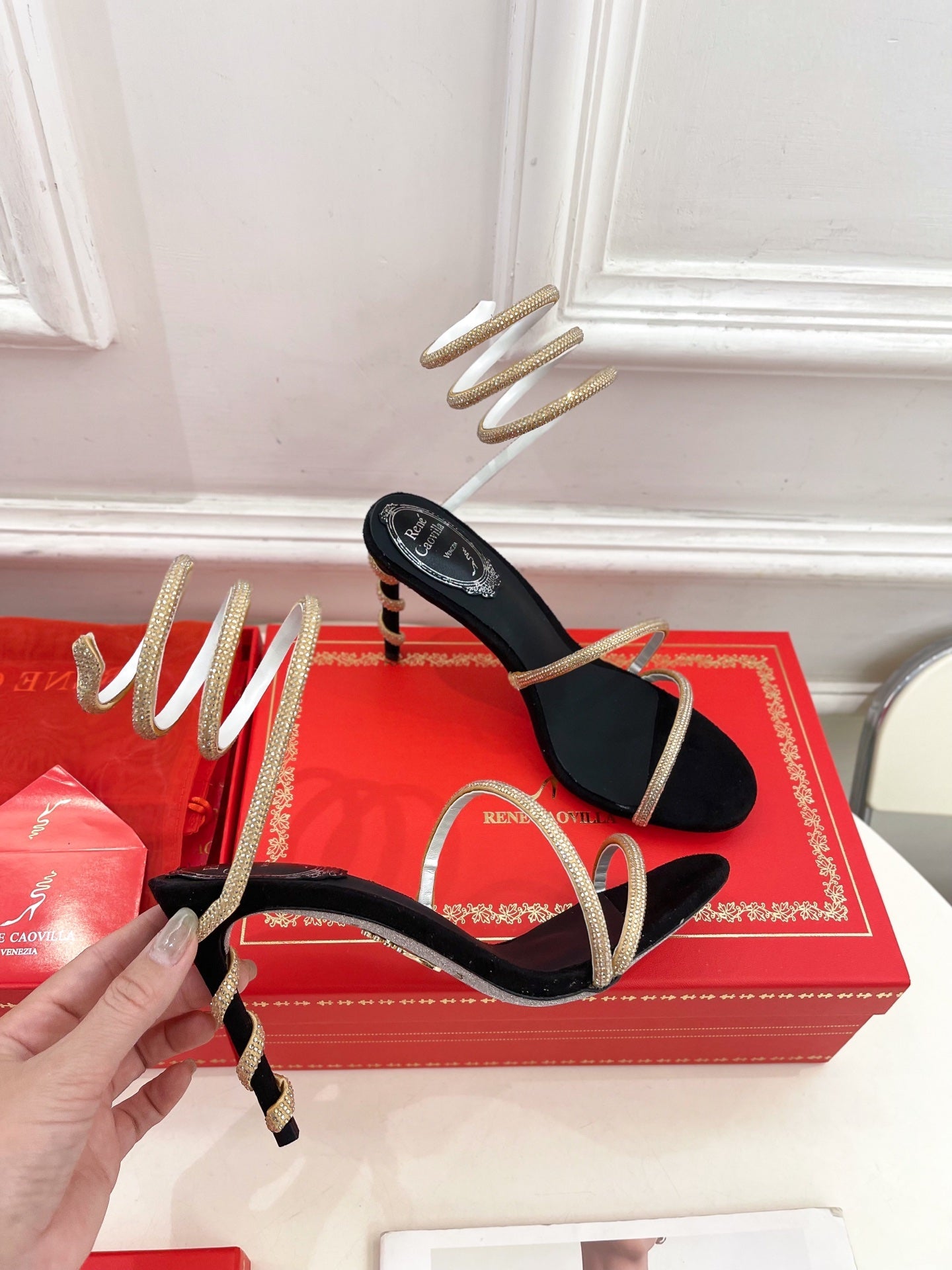 RC 25 Crystal Diamond Snake-Shaped High-Heeled Black Gold Silk Rhinestones 253544