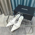 Slingback 50 White Mesh Calfskin Pointed Toe
