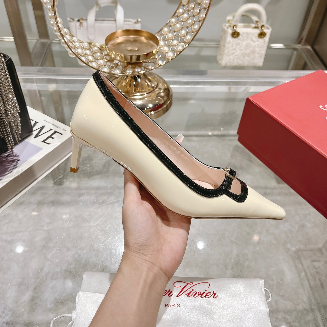 Viv Canard Pumps 55 Black White Patent Leather