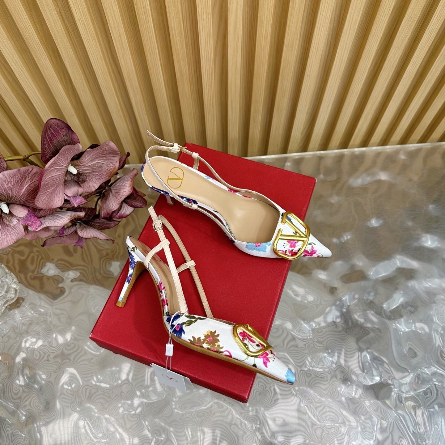 VT 25 Flower Slingback White Floral Fabric Sheepskin 325191