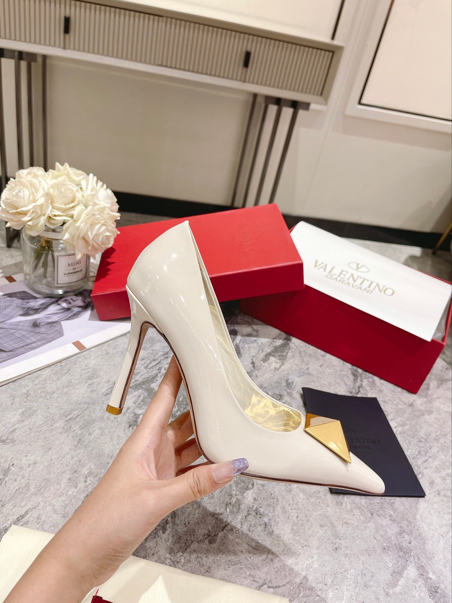 VT 25 Toe Pumps White Patent Leather