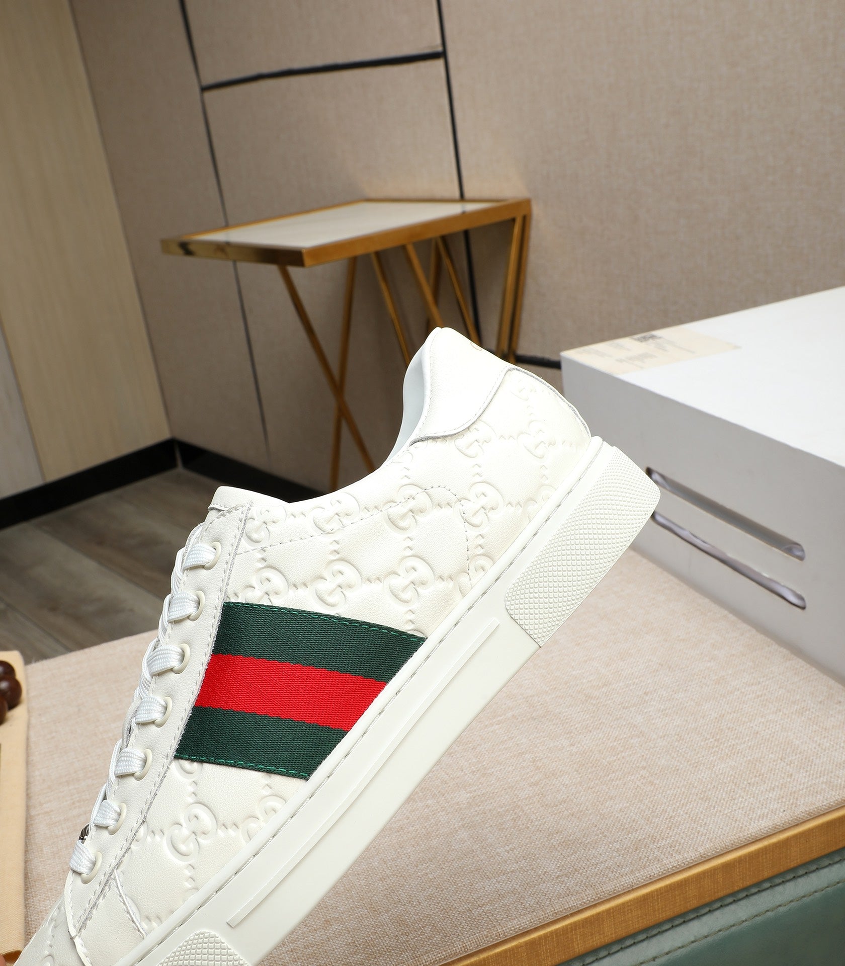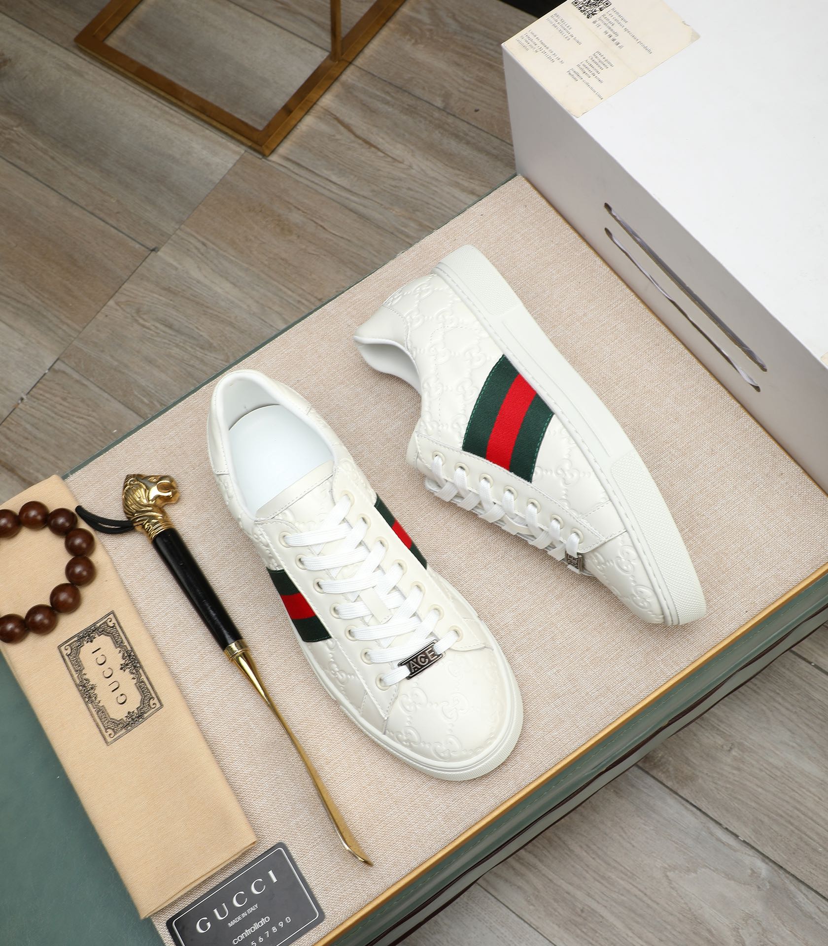 GG Men's ACE Sneaker White Embossed Calfskin 516600