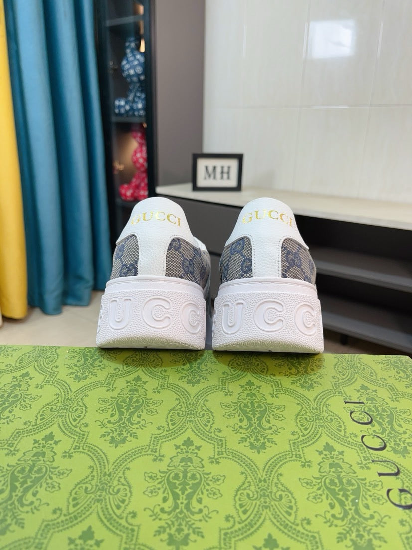 GG Men's Platform Sneaker White Blue Cowhide 523419