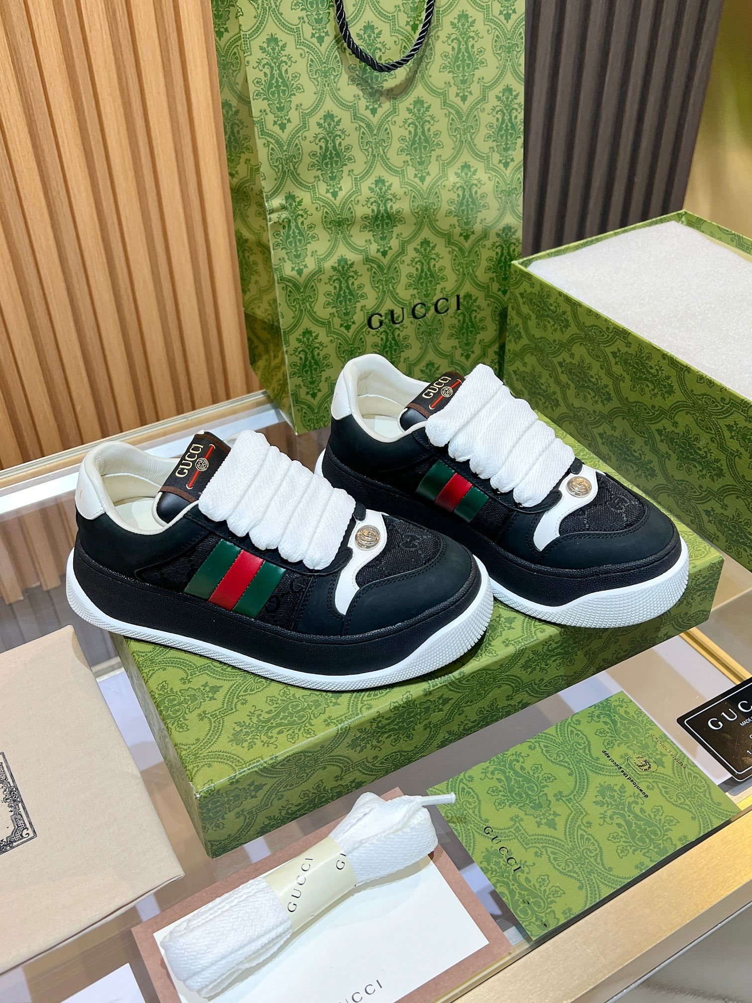 GG Men's Screener Sneaker Black Canvas Sheepskin 523608