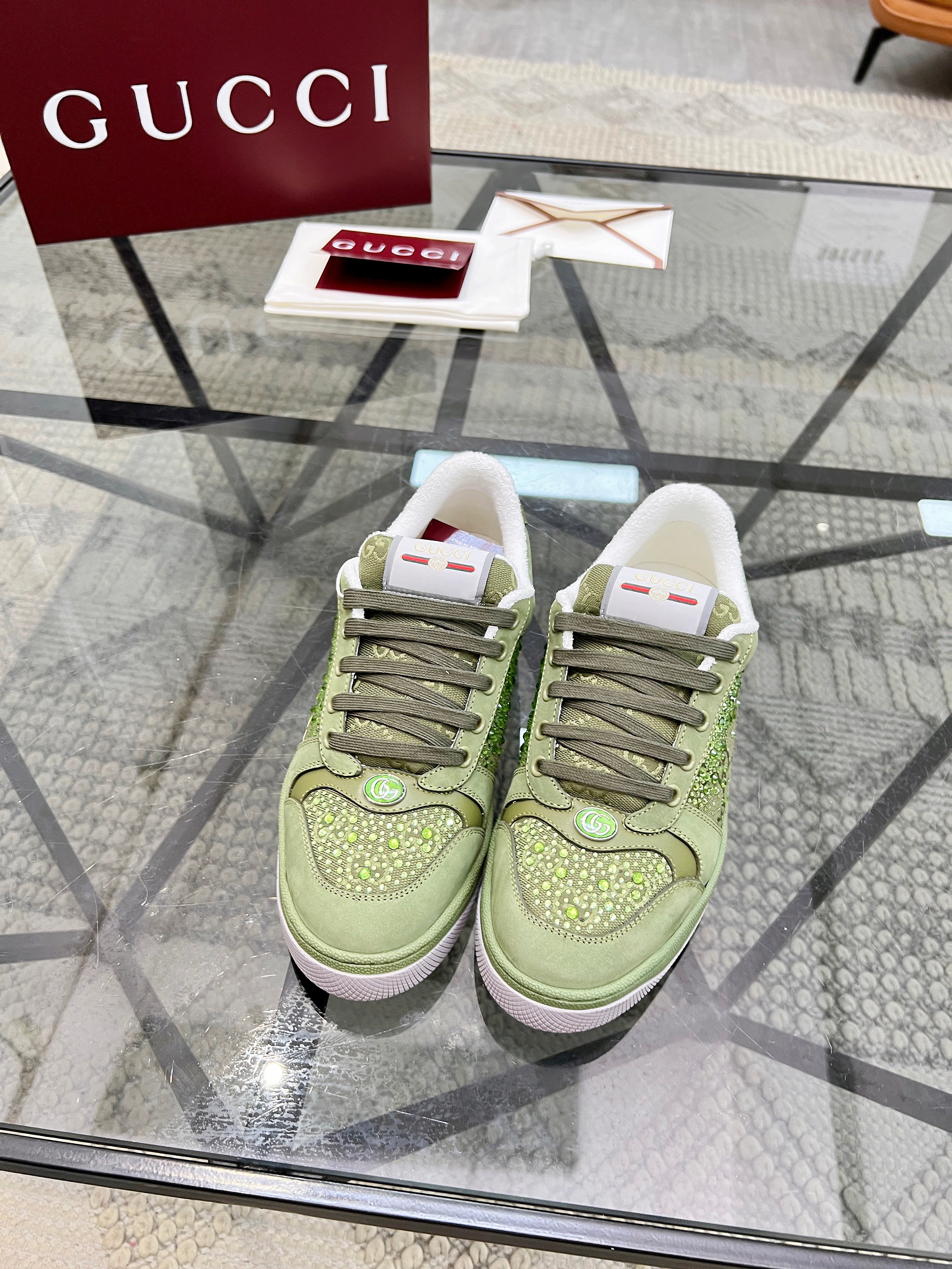 GG Men's Screener Sneaker Green Diamond Cowhide 559029