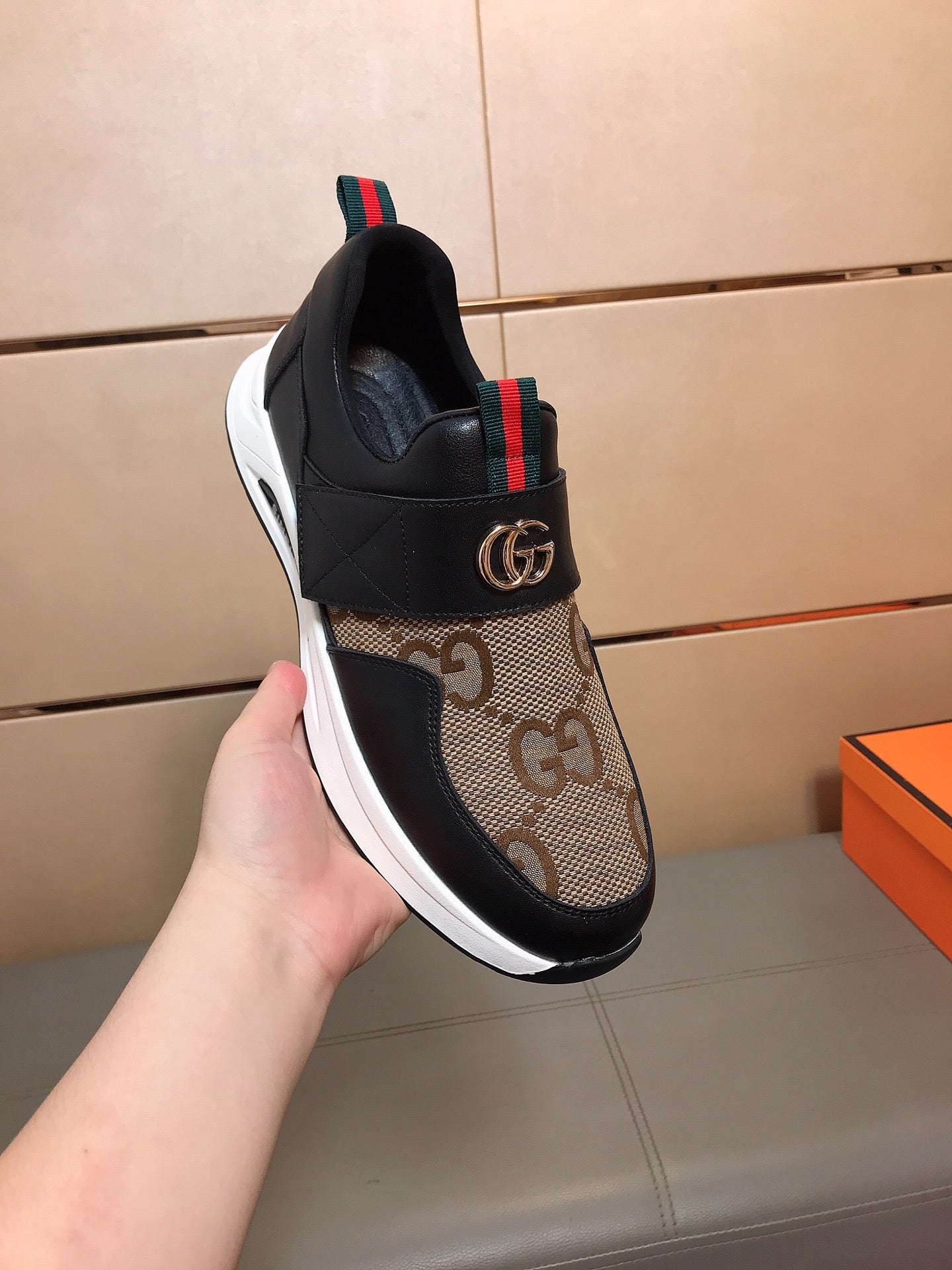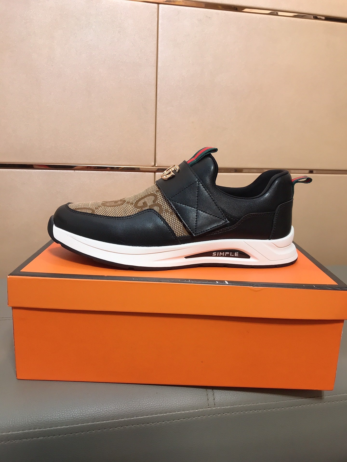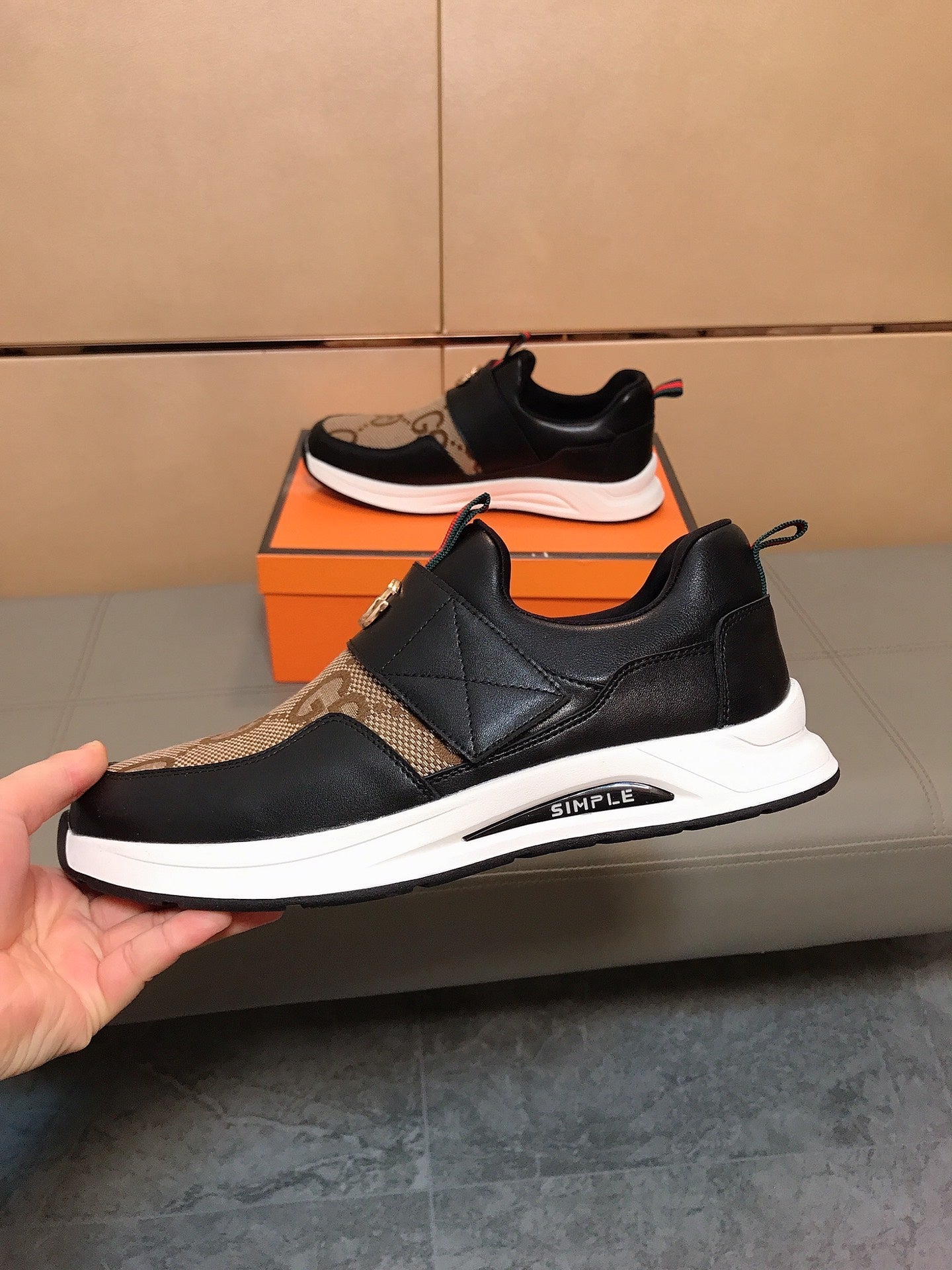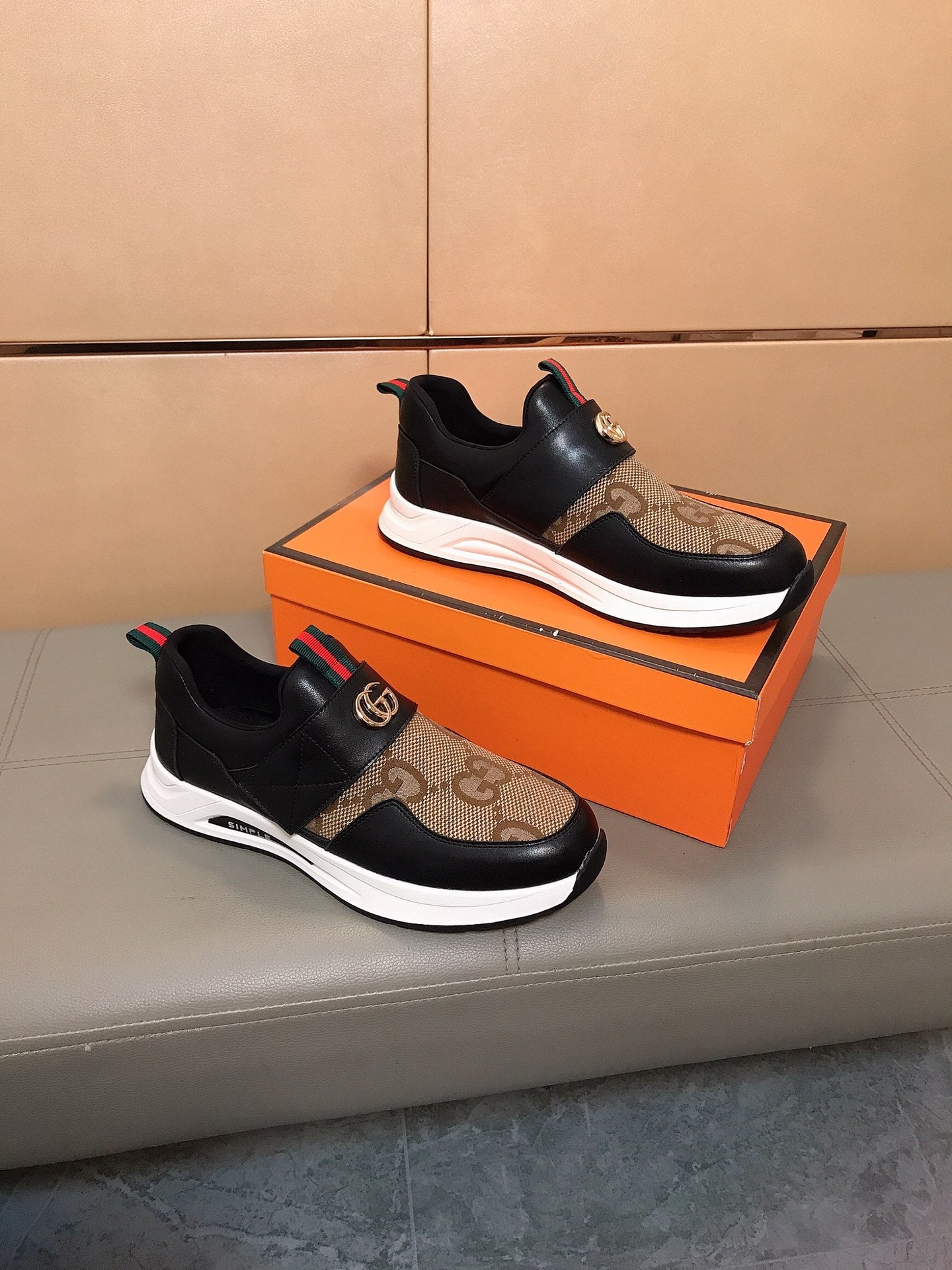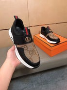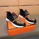 GG Men's Slip on Black Brown Cowhide Canvas 530402