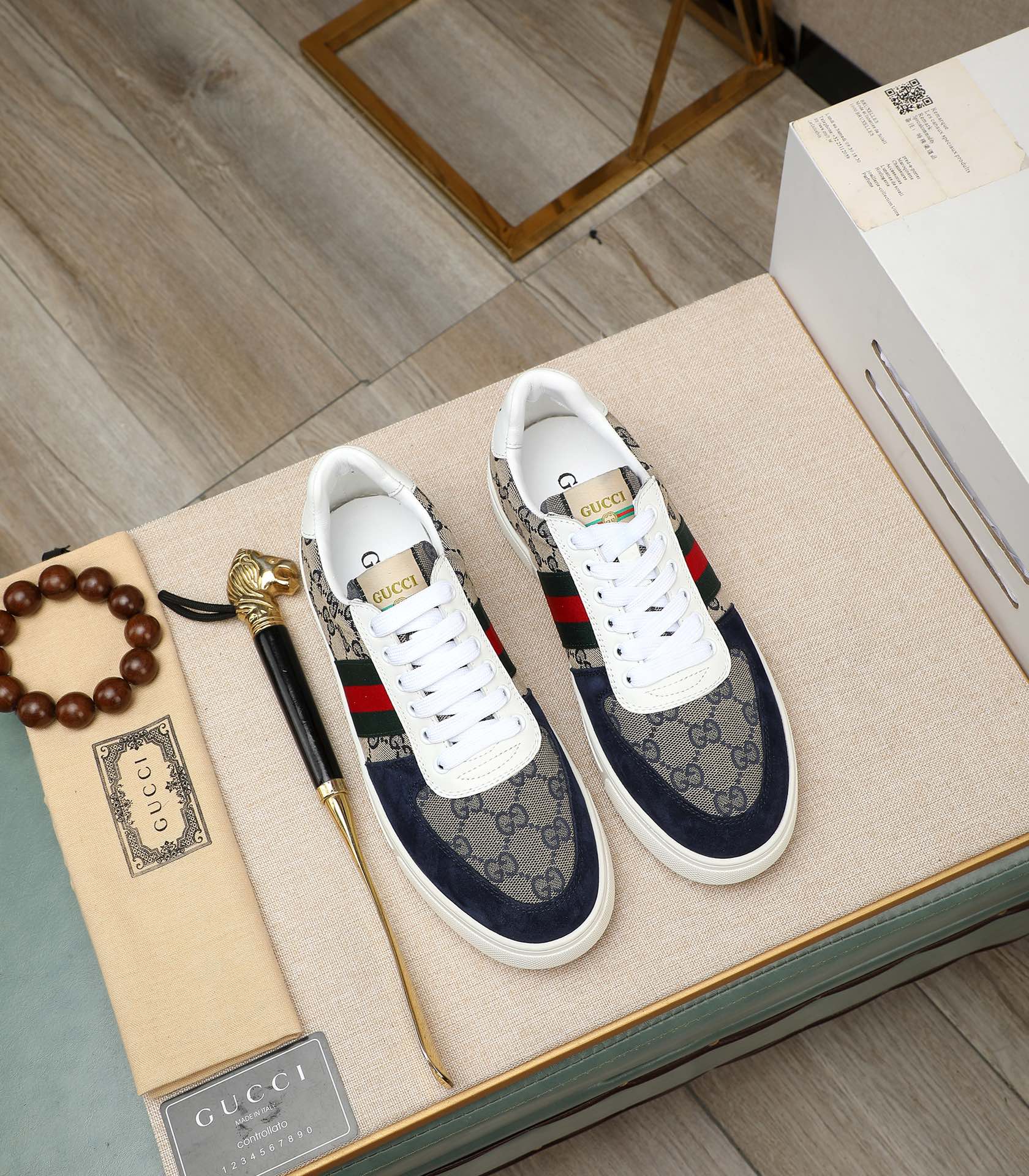 GG Men's Sneaker Blue Suede Canvas 487991