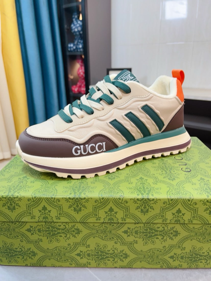 GG Men's Sneaker Brown Beige Cowhide 523395