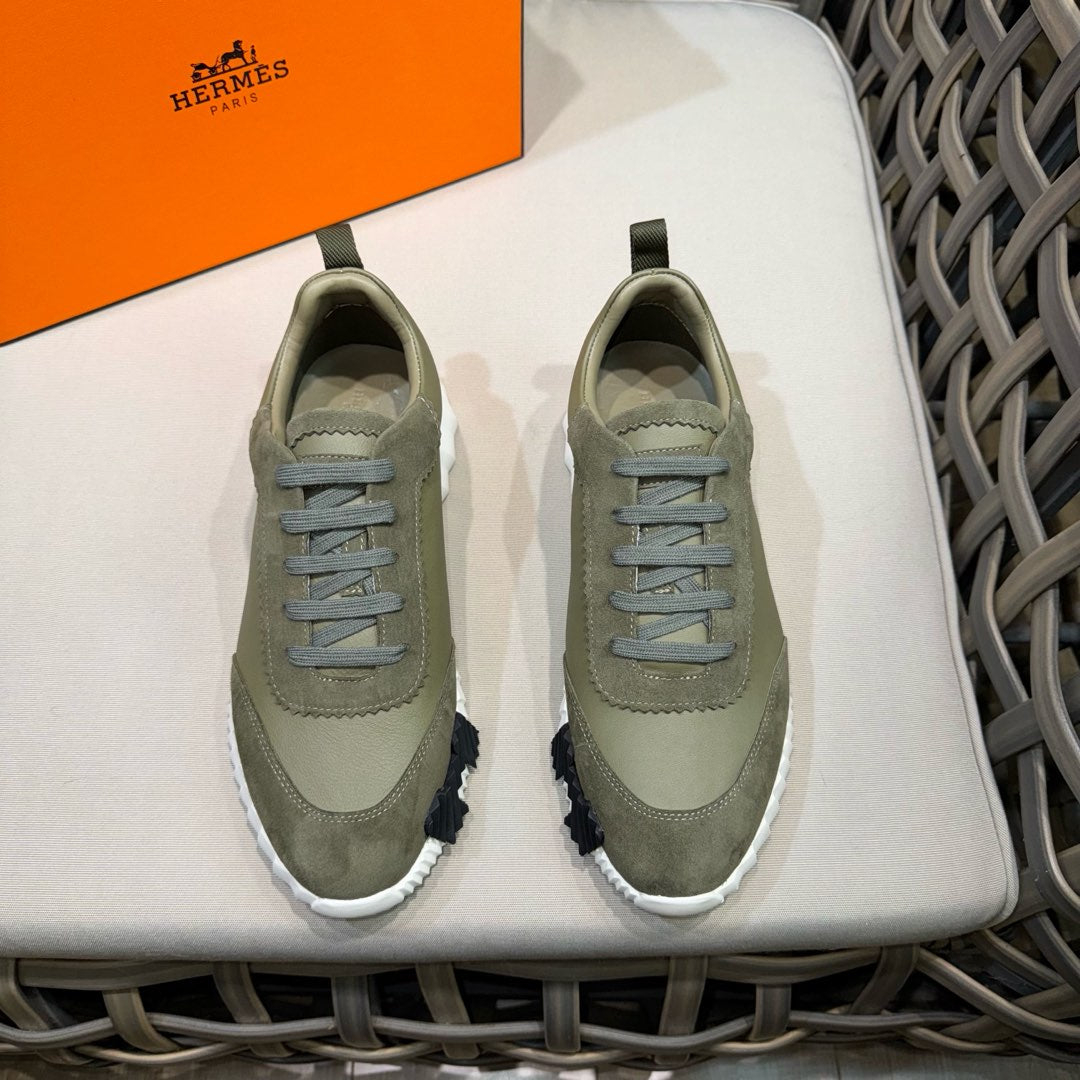 HM Men's Bouncing Sneaker Moss Green Calfskin Suede