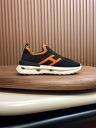 HM Men's Slip on Sneaker Black Orange Flyknit Fabric 690058
