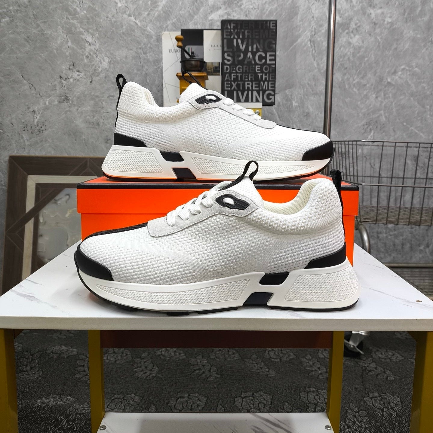 HM Men's Sneaker White Black Mesh Lambskin 543944