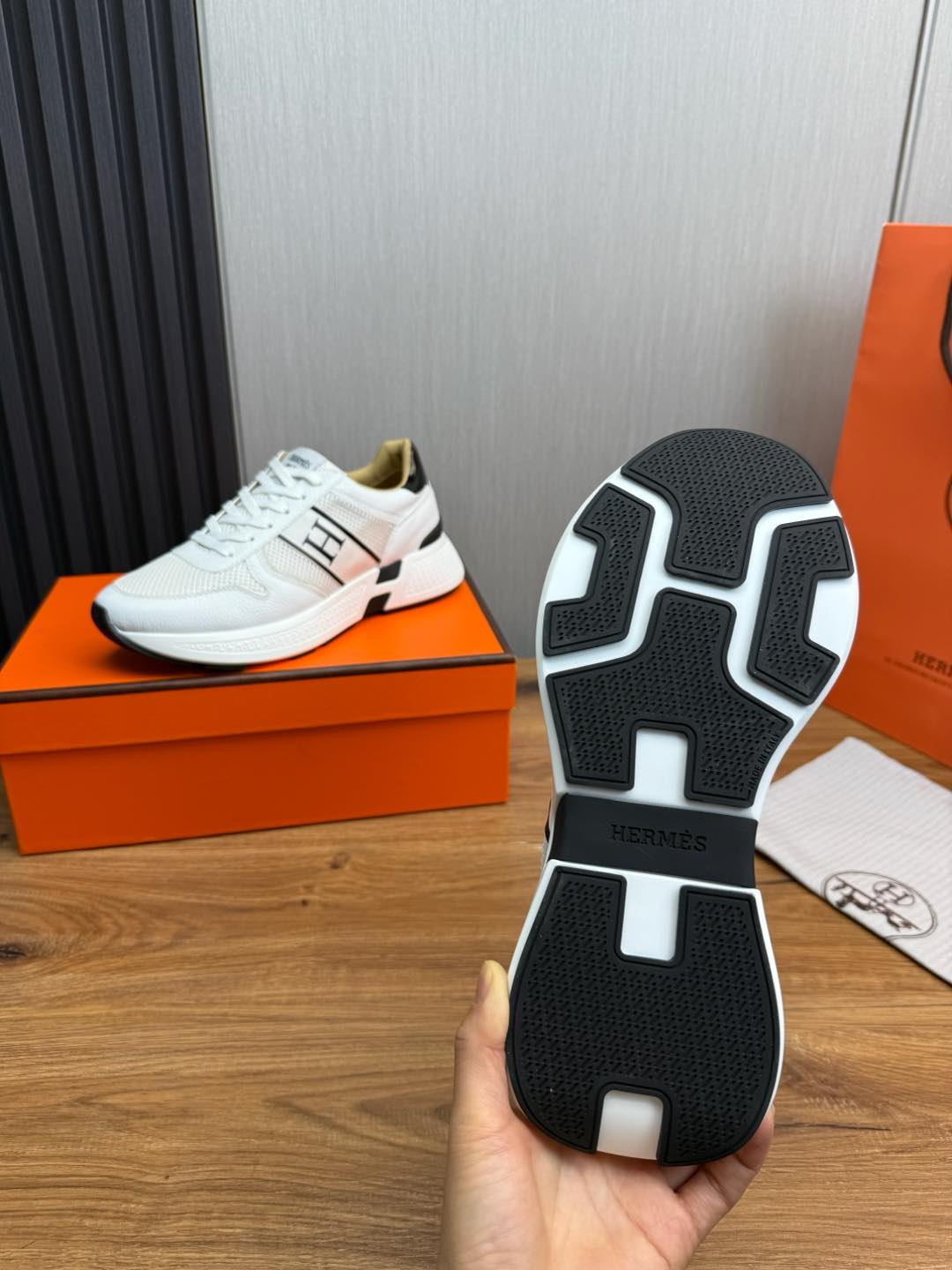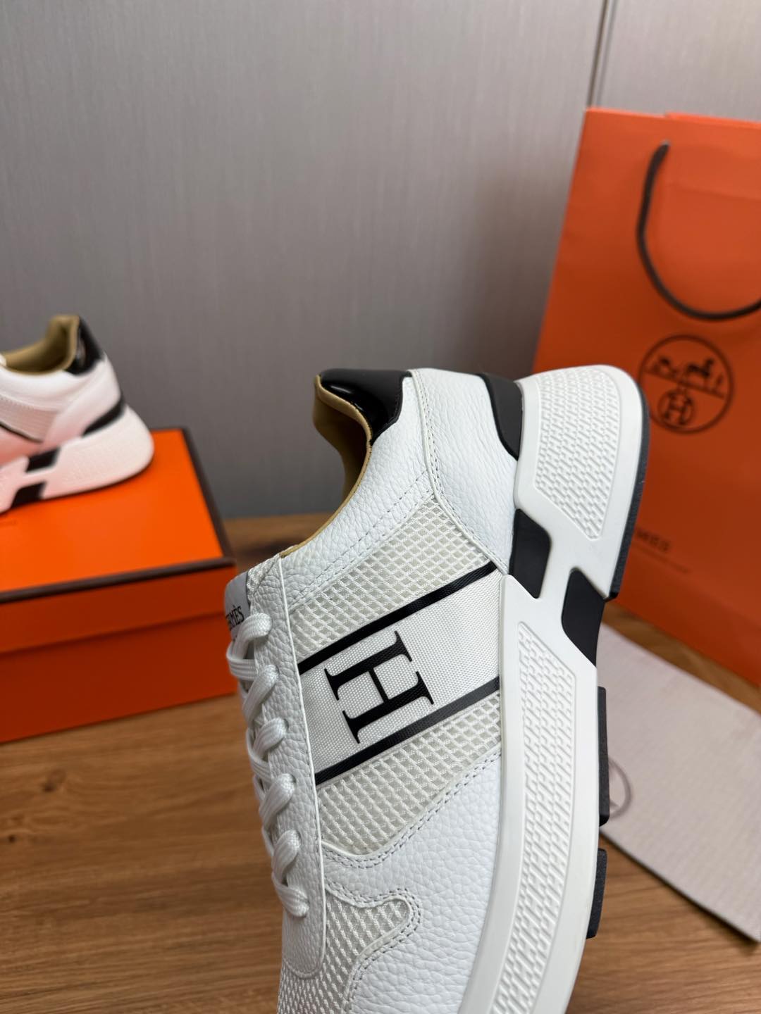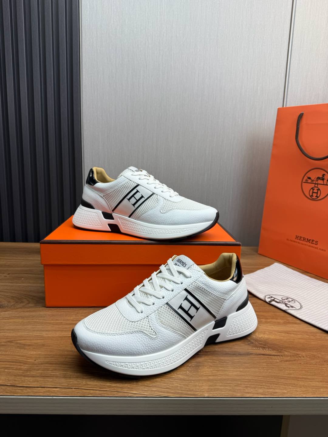 HM Men's Sneaker White Mesh Cowhide 519226