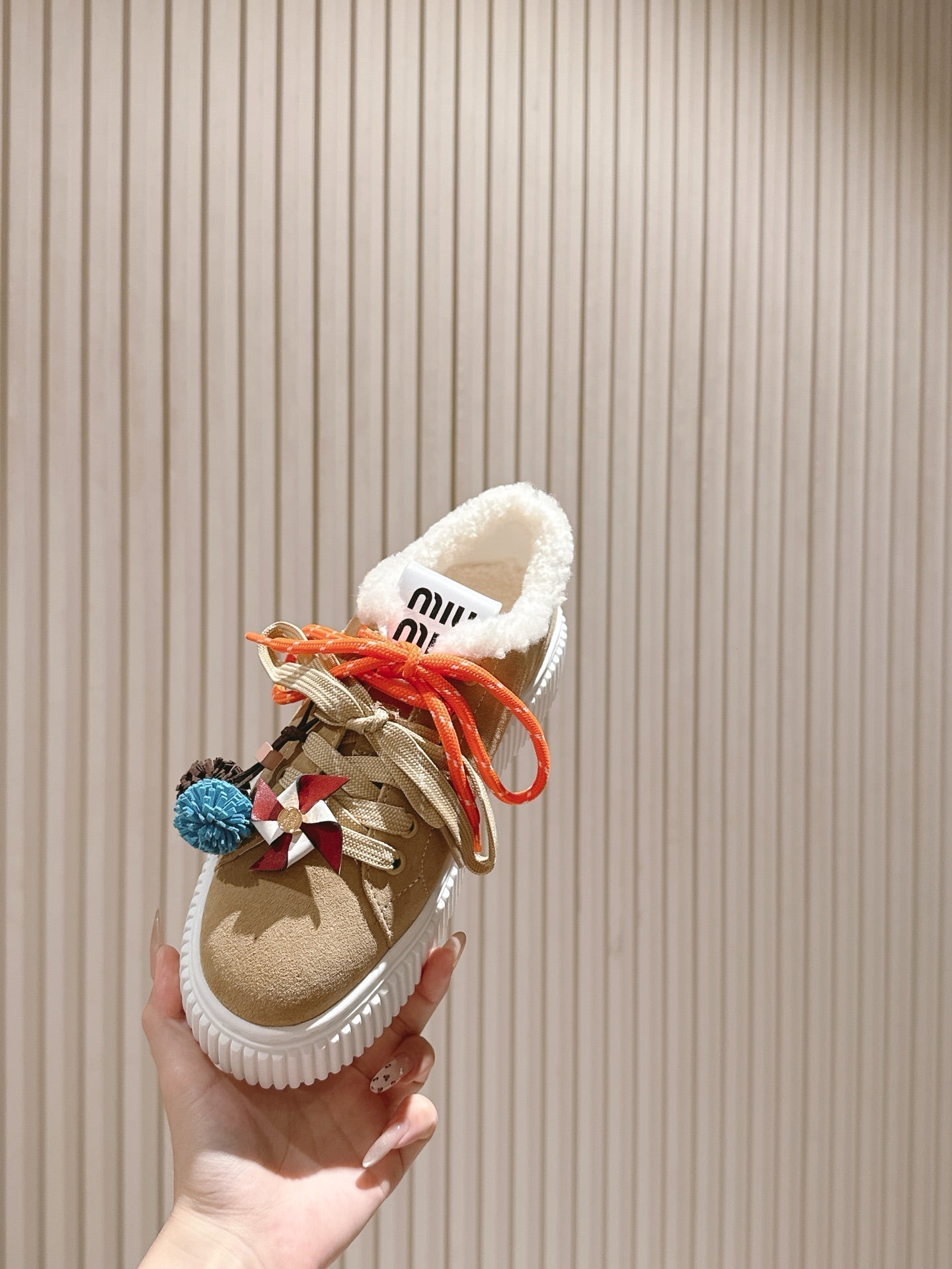 MIU MIU platform sneakers light beige suede wool 461861