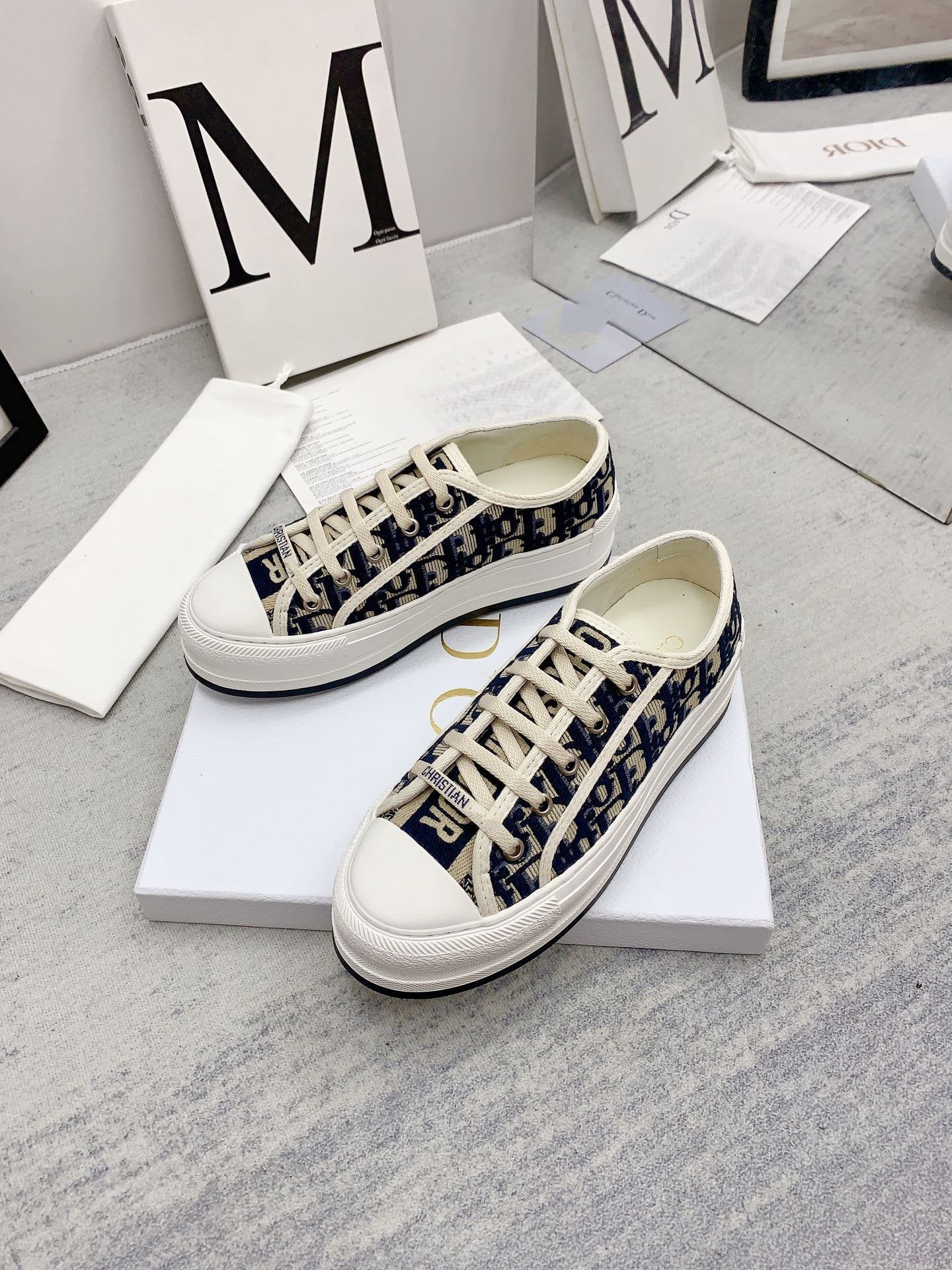 walkn 45 beige blue oblique embroidery canvas