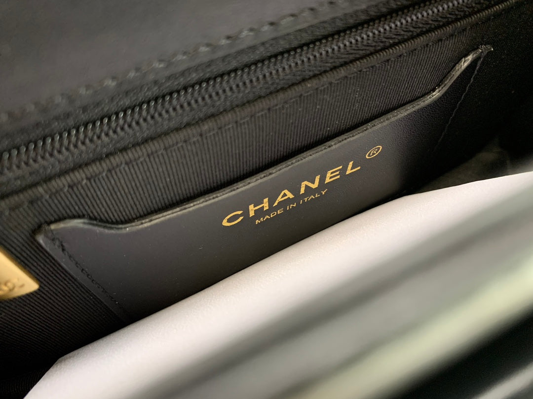 CC Quilted Mini Graphic Catch Flap Bag Black Lambskin