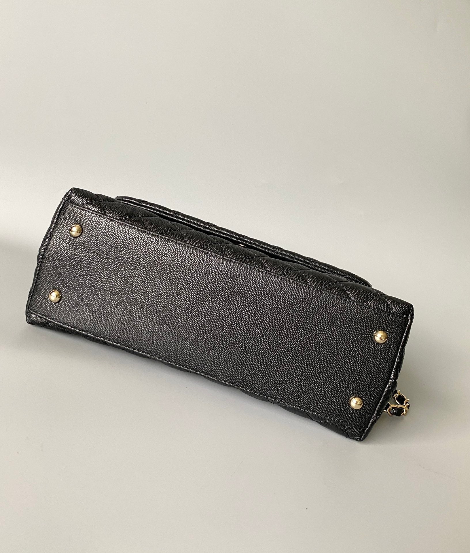 coco handle medium flap bag 28cm black quilted caviar dark red top handle