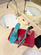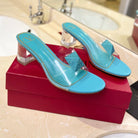 HIGH MULE 60MM IN AQUA BLUE SHEEPSKIN AND TRANSPARENT PVC