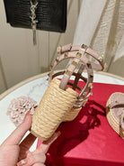 ROCKSTUD ANKLE STRAP WEDGE SANDAL IN CREPE PINK CALFSKIN LEATHER 95 MM