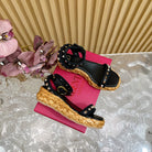 Rockstud Flatform Sandal 45mm In Black Calfskin And Raffia 102848