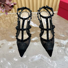 Rockstud Metallic Ankle Strap Pump 95mm Black Lambskin And Lace Fabric 102091