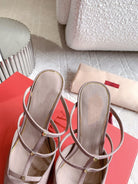 Rockstud Wispy Calfskin Mule 90mm Matte Rose Cannelle