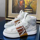 Valenti High Top VL7N White Calfskin Brown Canvas 993746