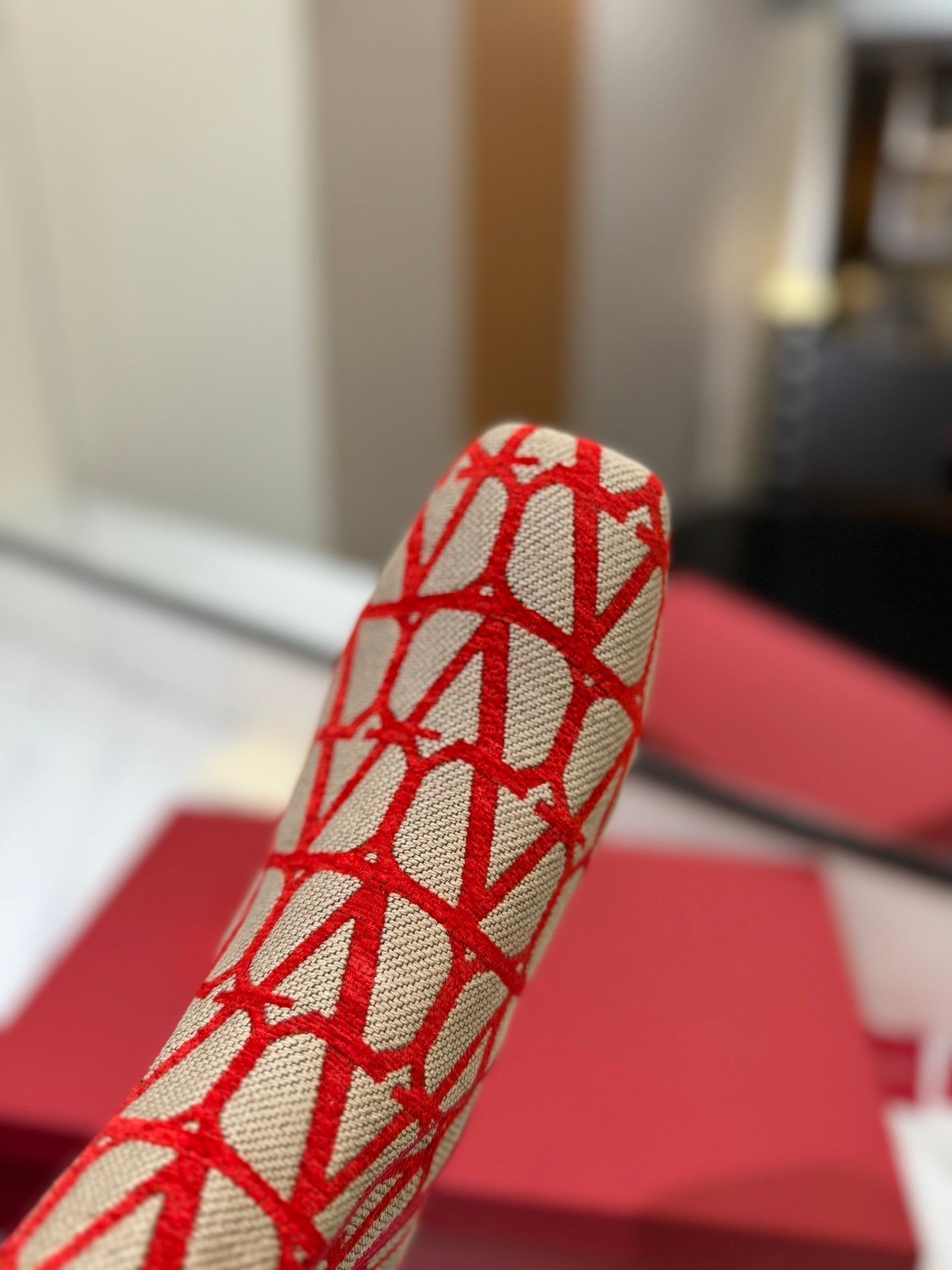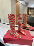Valentino Garavani VLogo Tall Monogram High Boots 30mm In Beige Mix Red Canvas Fabric 992789