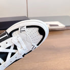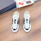 VL7N LOW-TOP WHITE CALFSKIN AND BLACK FABRIC SNEAKER WITH BANDS