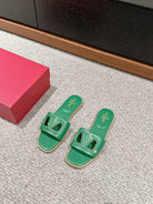 VLOGO CUT-OUT EMERALD GREEN CALFSKIN SLIDE SANDAL