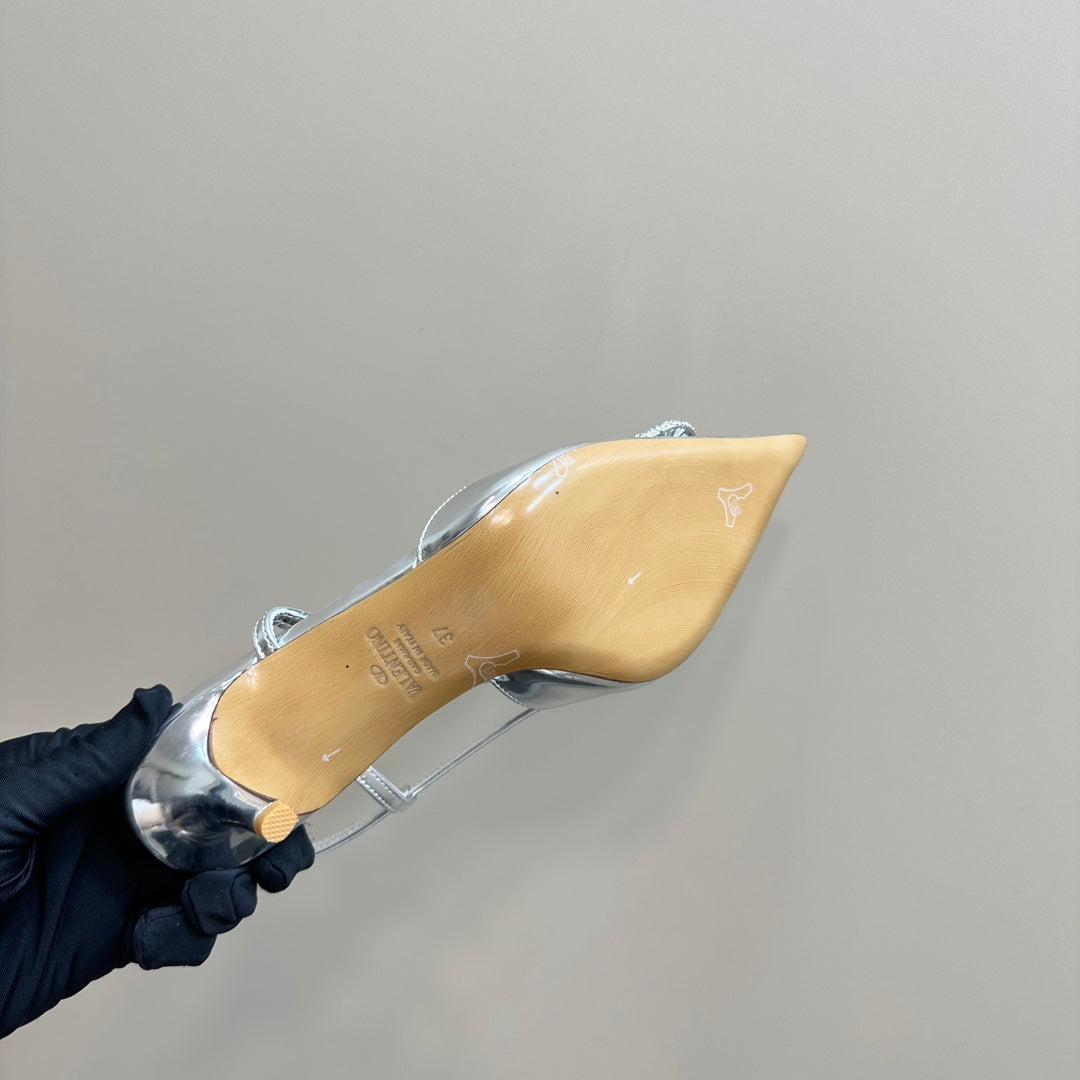 Vlogo Glow Laminated Nappa Leather Slingback Pump 65mm Sliver 999043