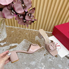 VLOGO SIGNATURE HIGH SHINE OPEN TOE SANDALS 60 MM IN CREPE PINK CALFSKIN