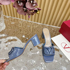 VLOGO SIGNATURE HIGH SHINE OPEN TOE SANDALS 60 MM IN PEGEON BLUE CALFSKIN