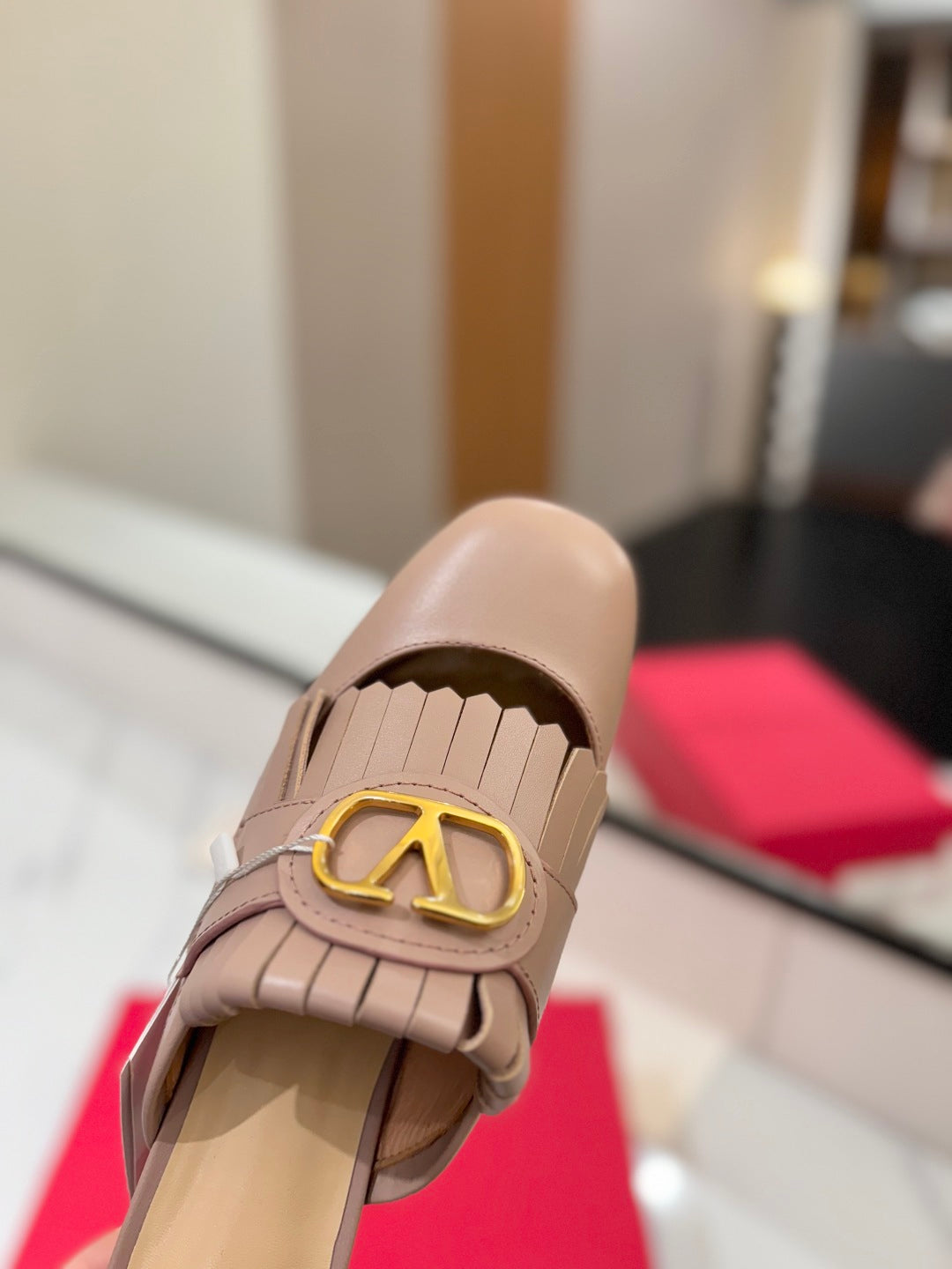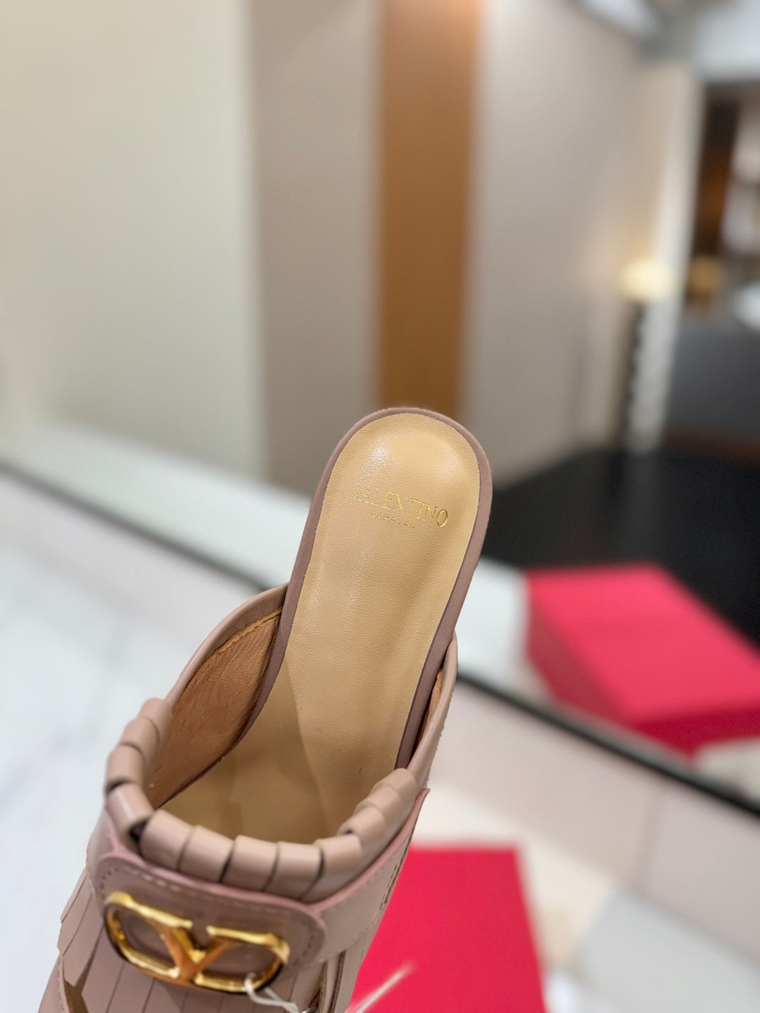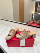 VT 2025 Signature Heeled Mule Pure Beige Calf Leather 295077