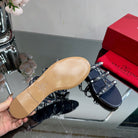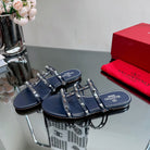VT 25 Rockstud Flat Sandals Navy Blue PVC Sheepskin