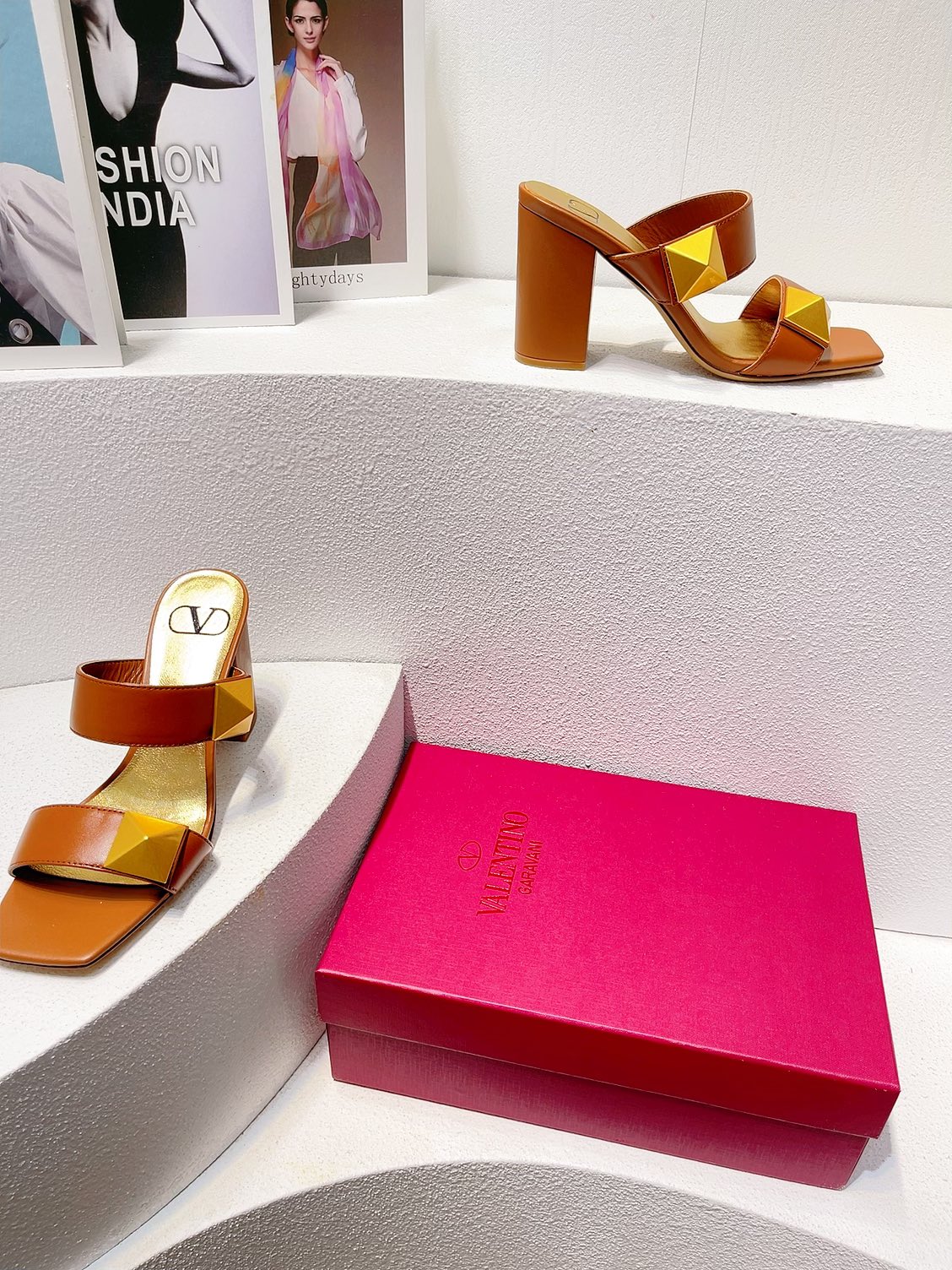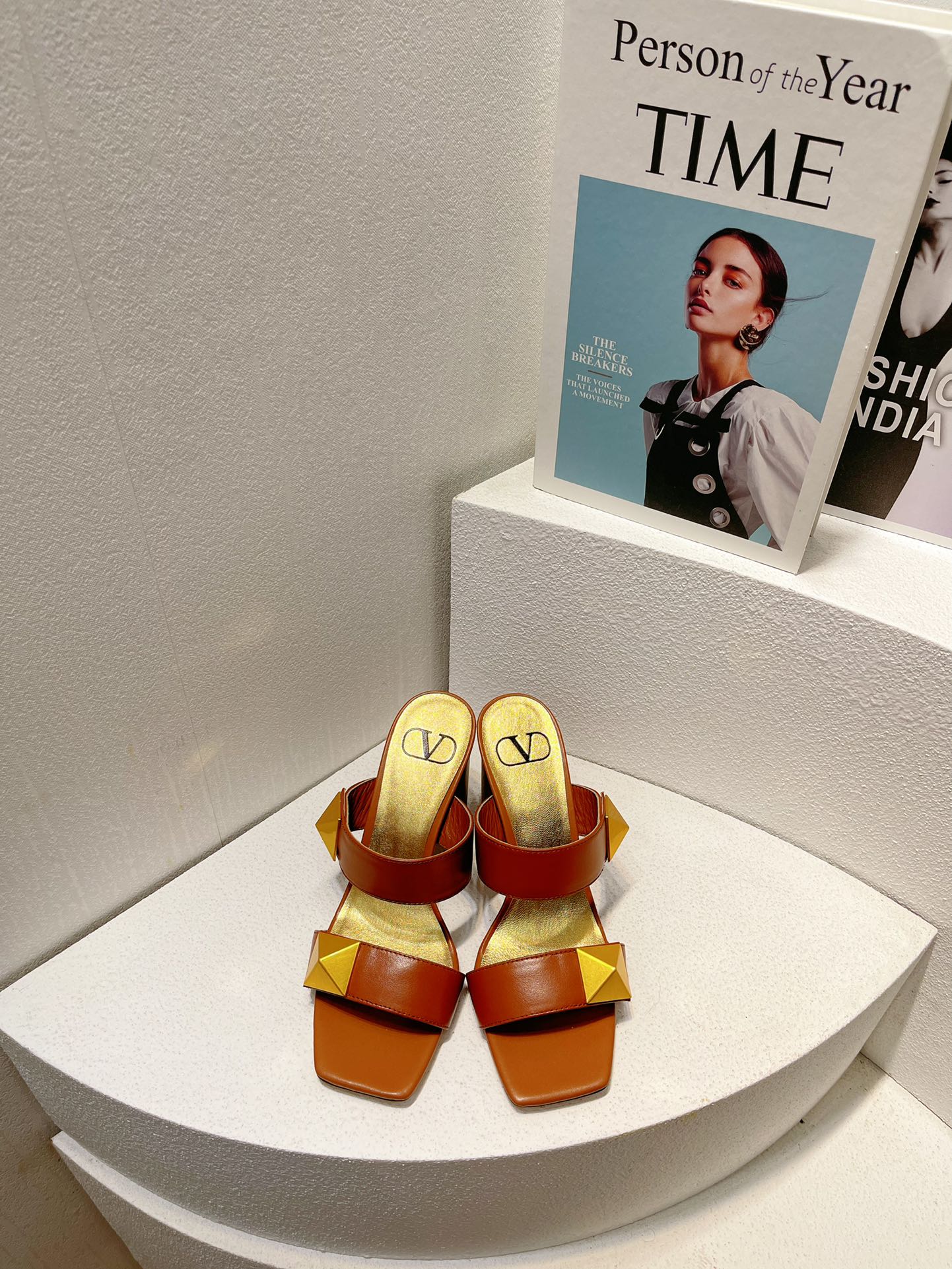 VT One Stud Leather Sandals Brown Cowhide 292753