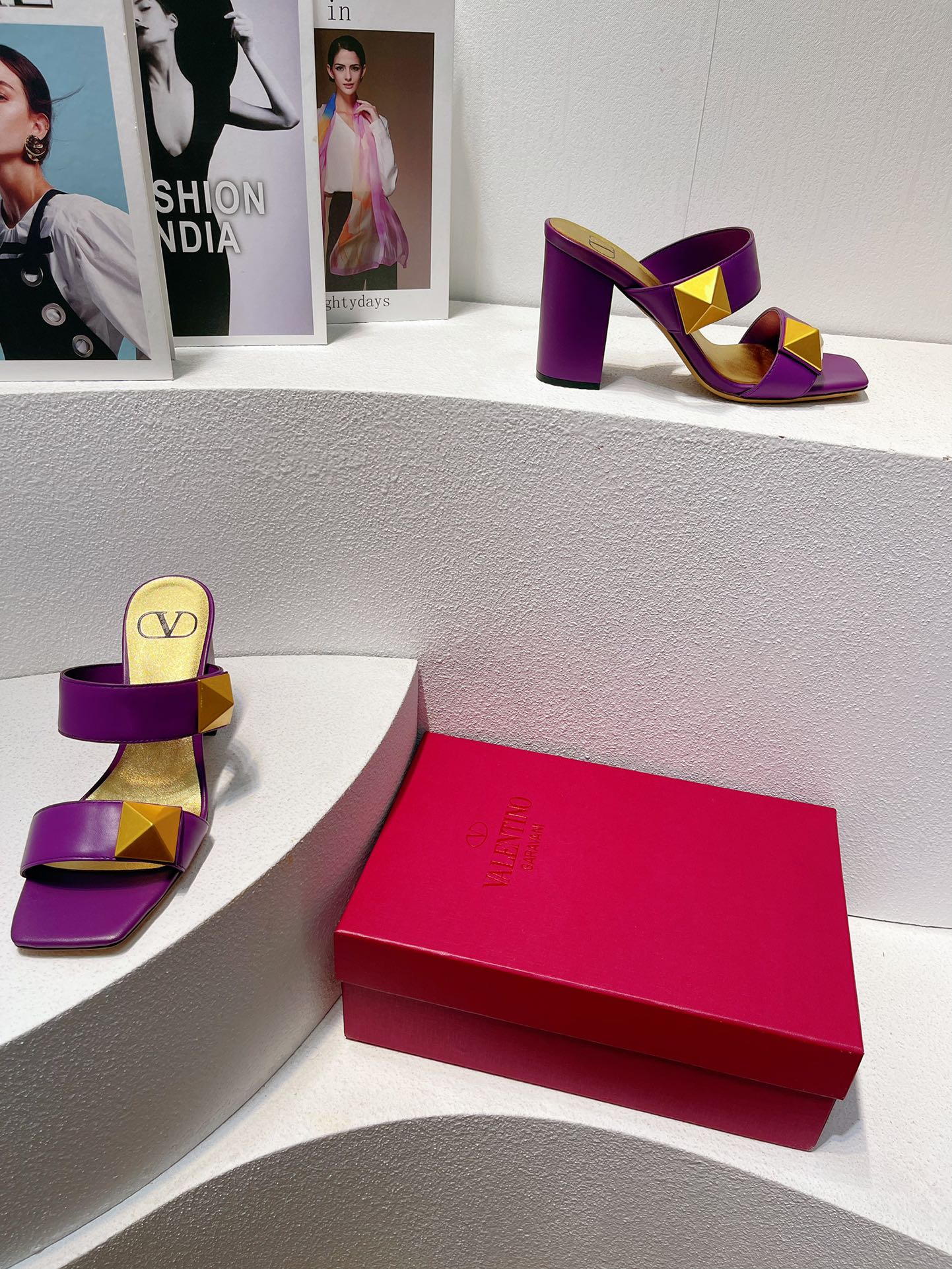 VT One Stud Leather Sandals Purple Cowhide 292891