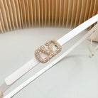 VL Belt 8mm Buckle Gold Diamond Leather White