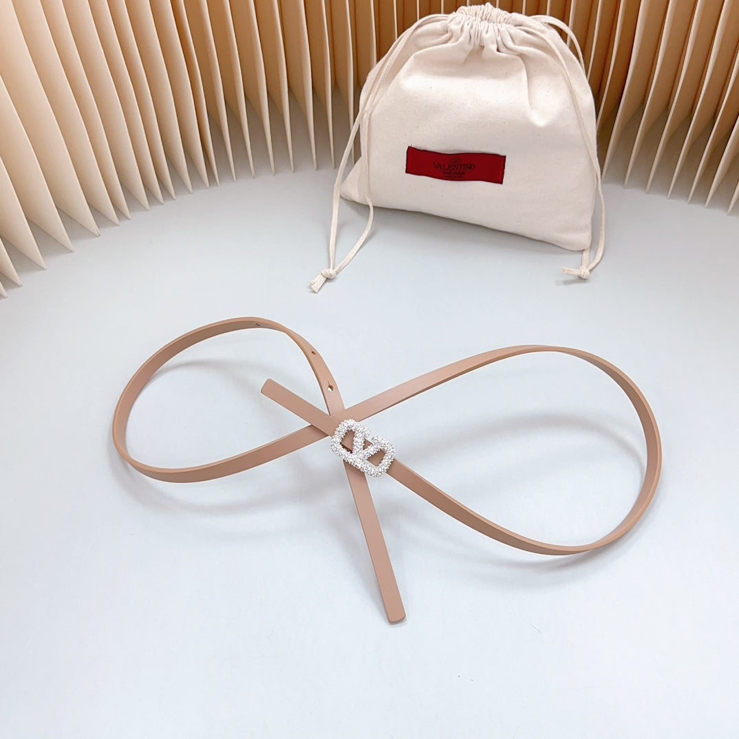 VL Belt 8mm Buckle Silver Diamond Leather Beige
