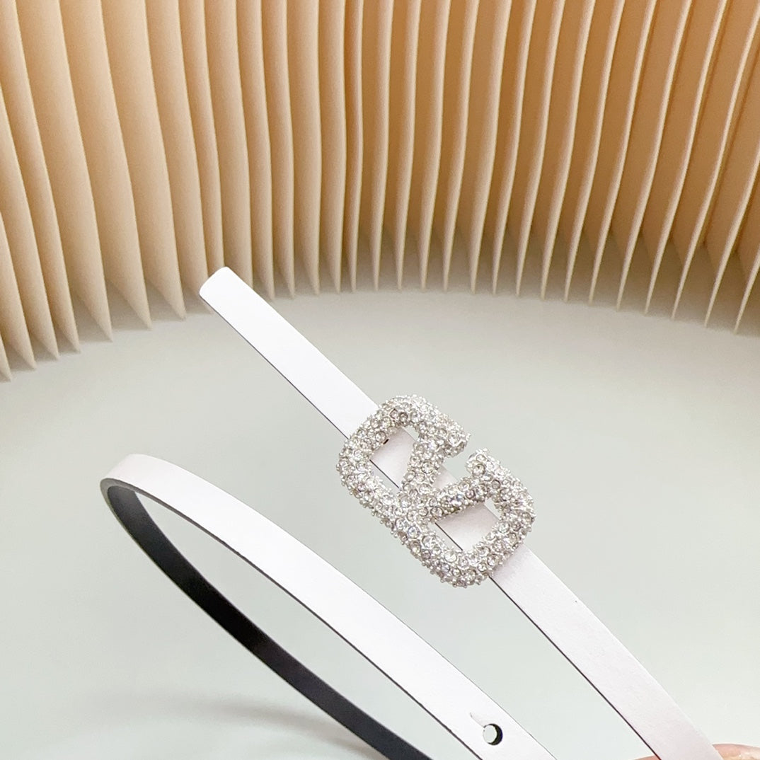 VL Belt 8mm Buckle Silver Diamond Leather White Black
