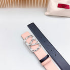 Vlogo Brown Black White Stone Silver Buckle Belt 40mm Black Light Pink Leather