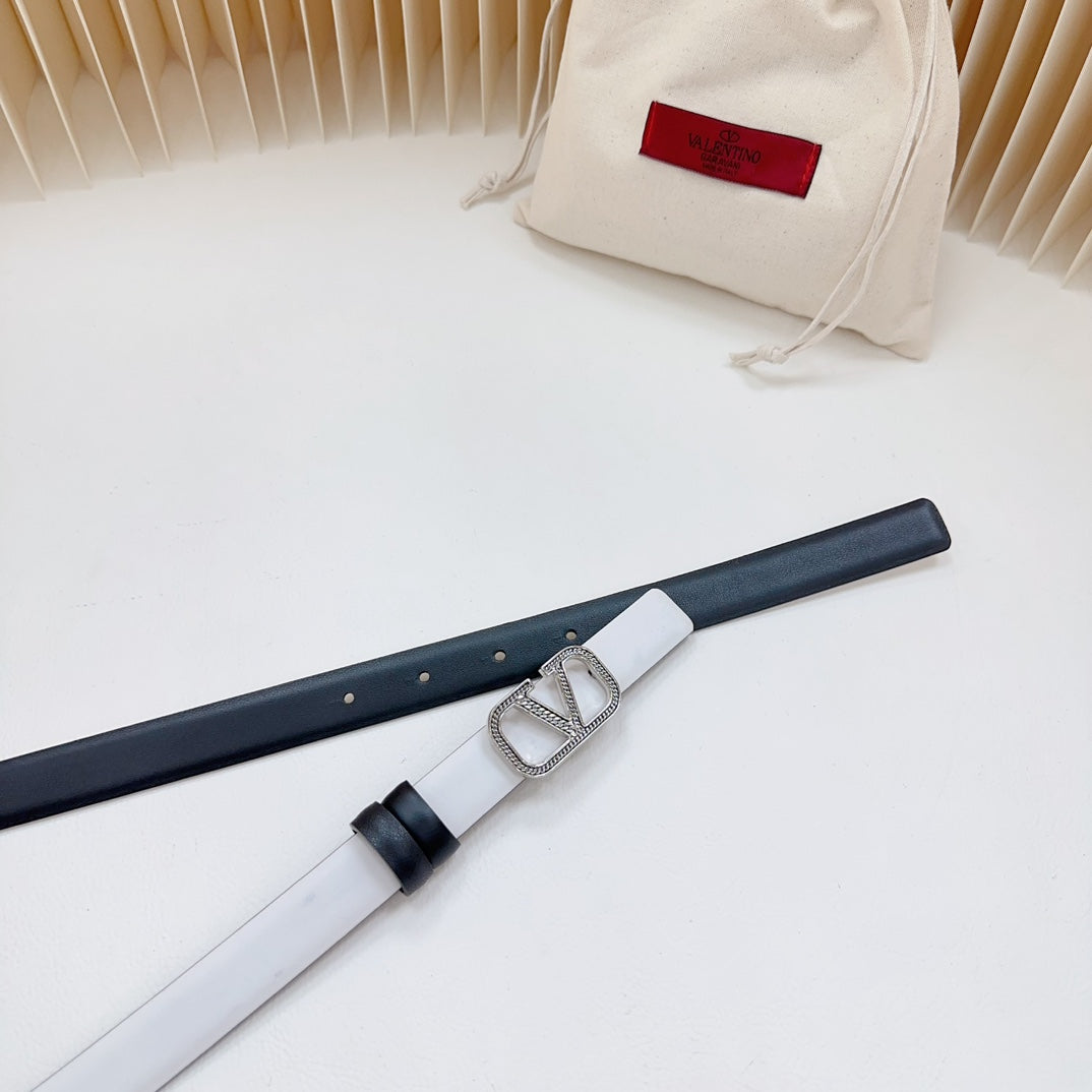 Vlogo Buckle Water Wave Silver Copper Glossy White Black Leather 20mm Belt