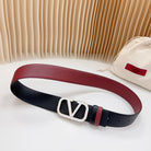 Vlogo White Gold Buckle Belt 40mm Wine Black Leather
