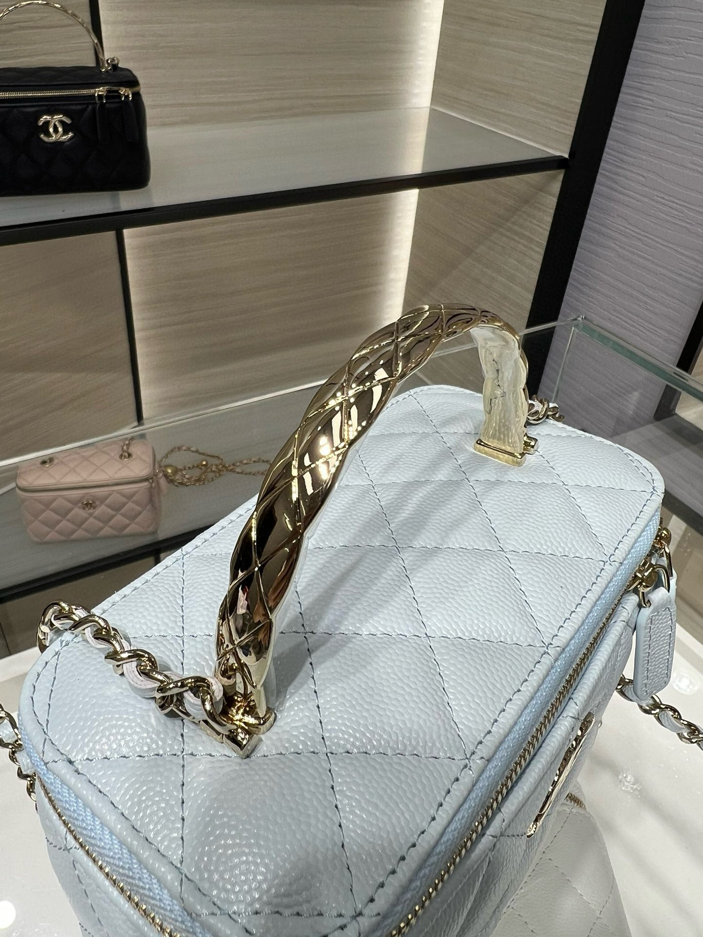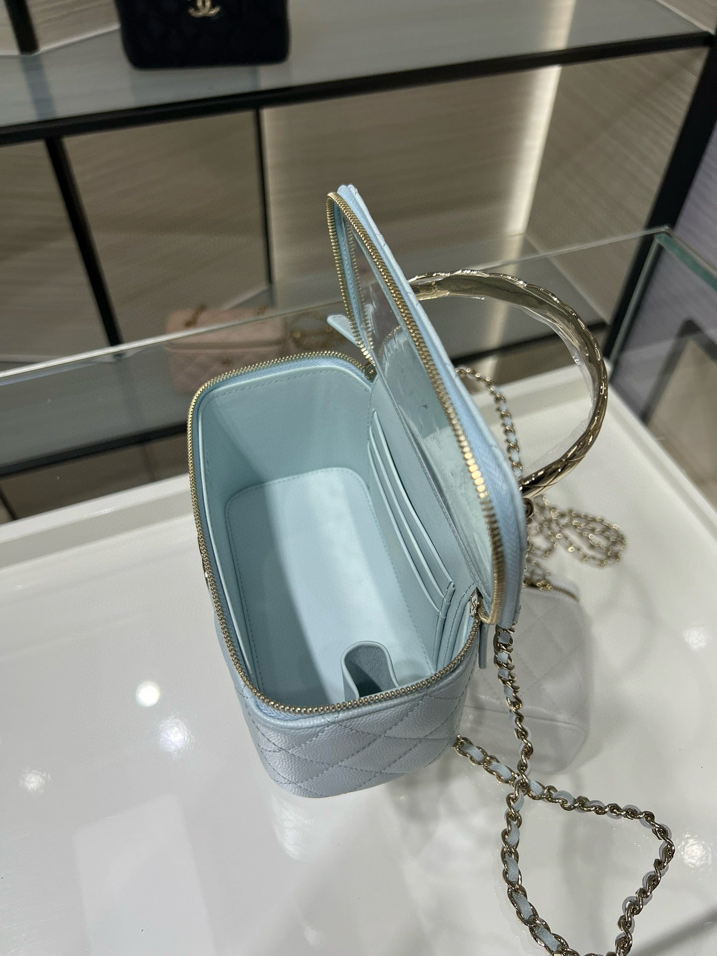 CC 25S Small Vanity 17cm Cloud Blue Grained Calfskin Light Gold Hardware