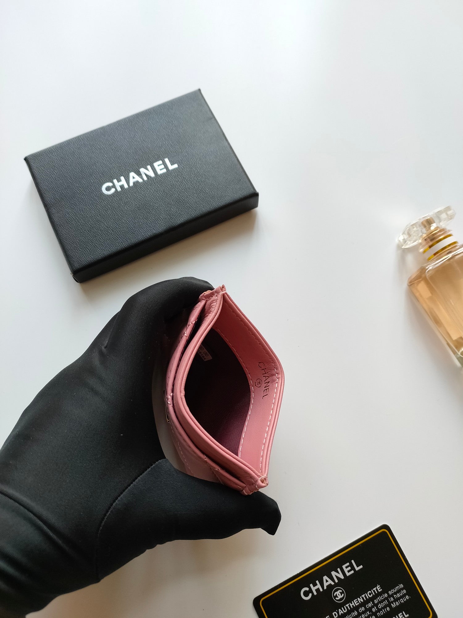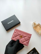 CC CARD HOLDER 11.2 LIGHT PINK CALFSKIN GOLD ICON