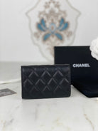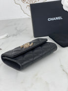 CC FLAP CARD HOLDER 11 BLACK GRAINED CALFSKIN GOLD ICON
