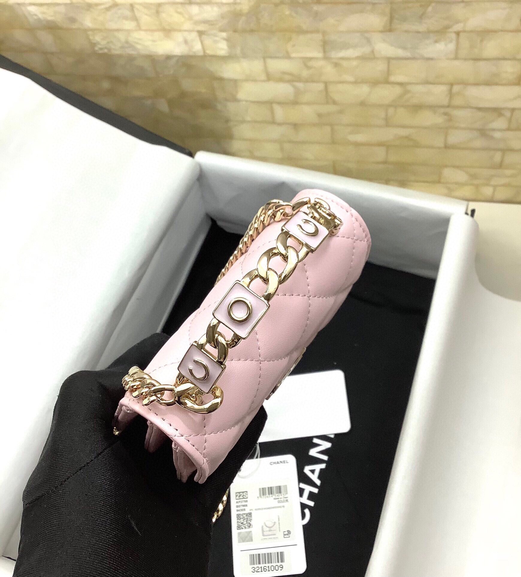 cc woc 13cm with top handle pink quilted calfskin gold hardware