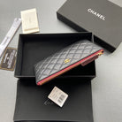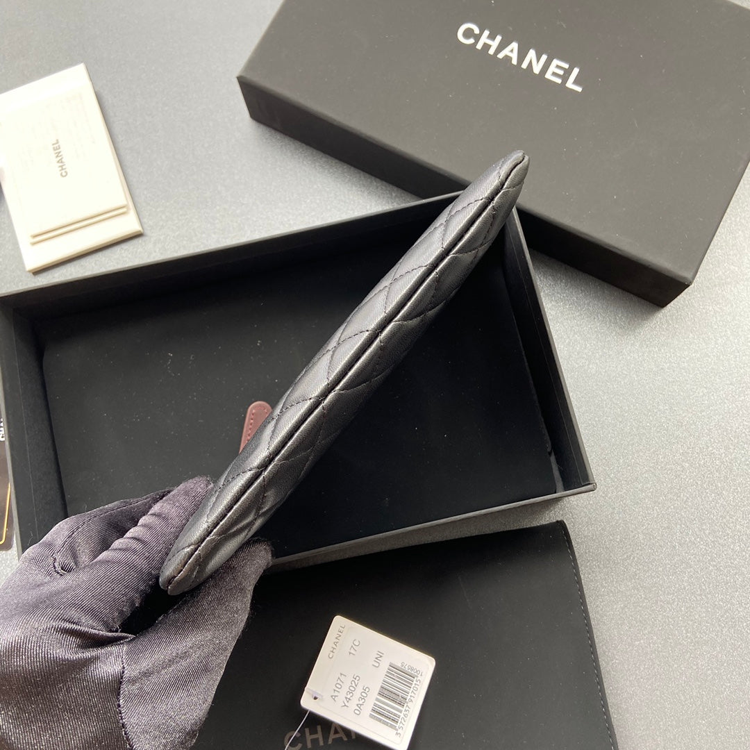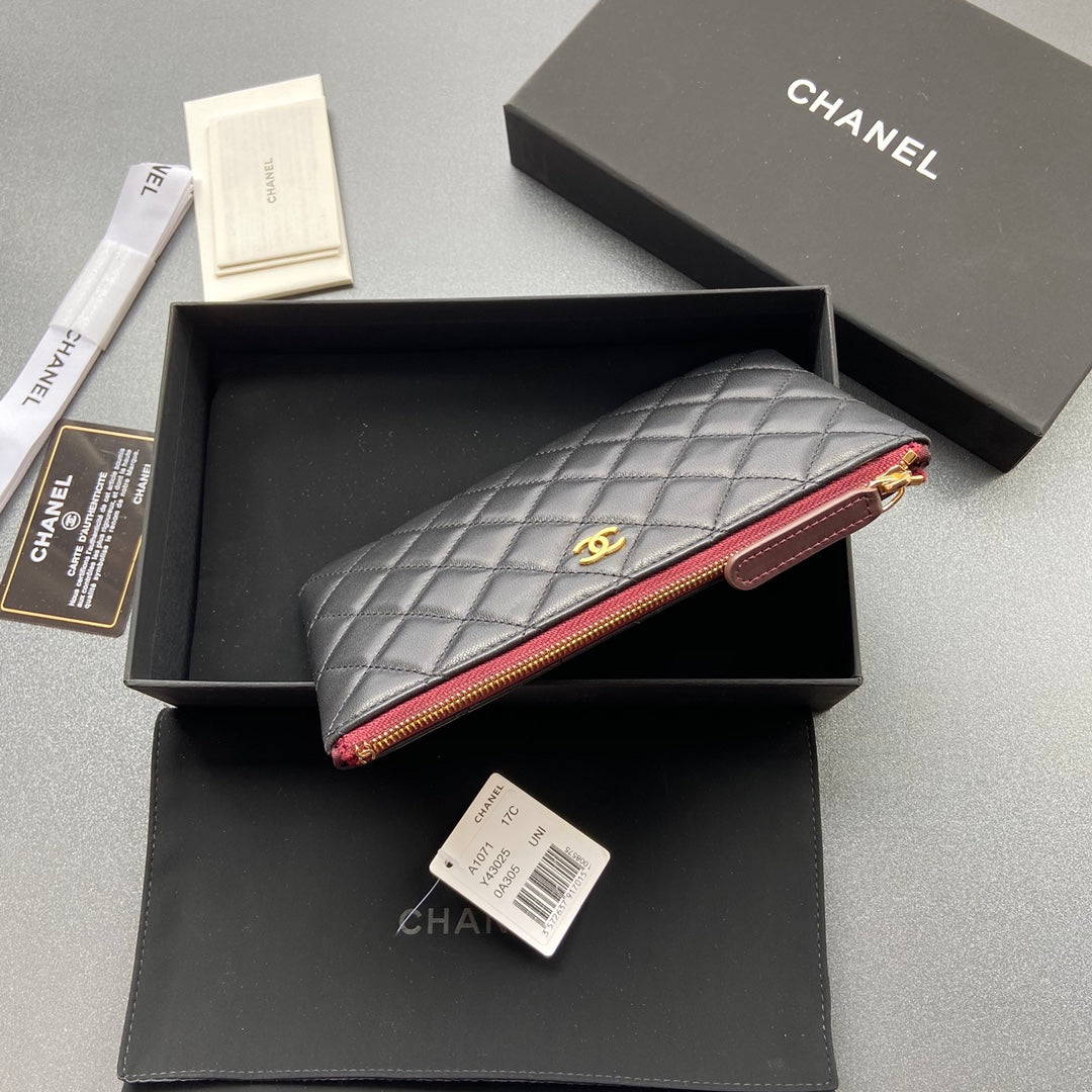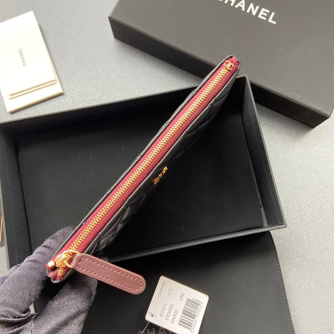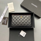cc zipped wallet 20cm black quilted calfskin gold hardware