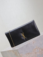 CALYPSO POUCH 24 IN BLACK LAMBSKIN GOLD LOGO