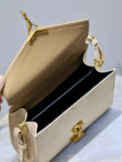 CASSANDRA MINI TOP HANDLE BAG 20 IN BEIGE SUEDE GOLD HARDWARE