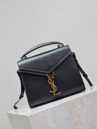 CASSANDRA MINI TOP HANDLE BAG 20 IN BLACK CALFSKIN GOLD HARDWARE